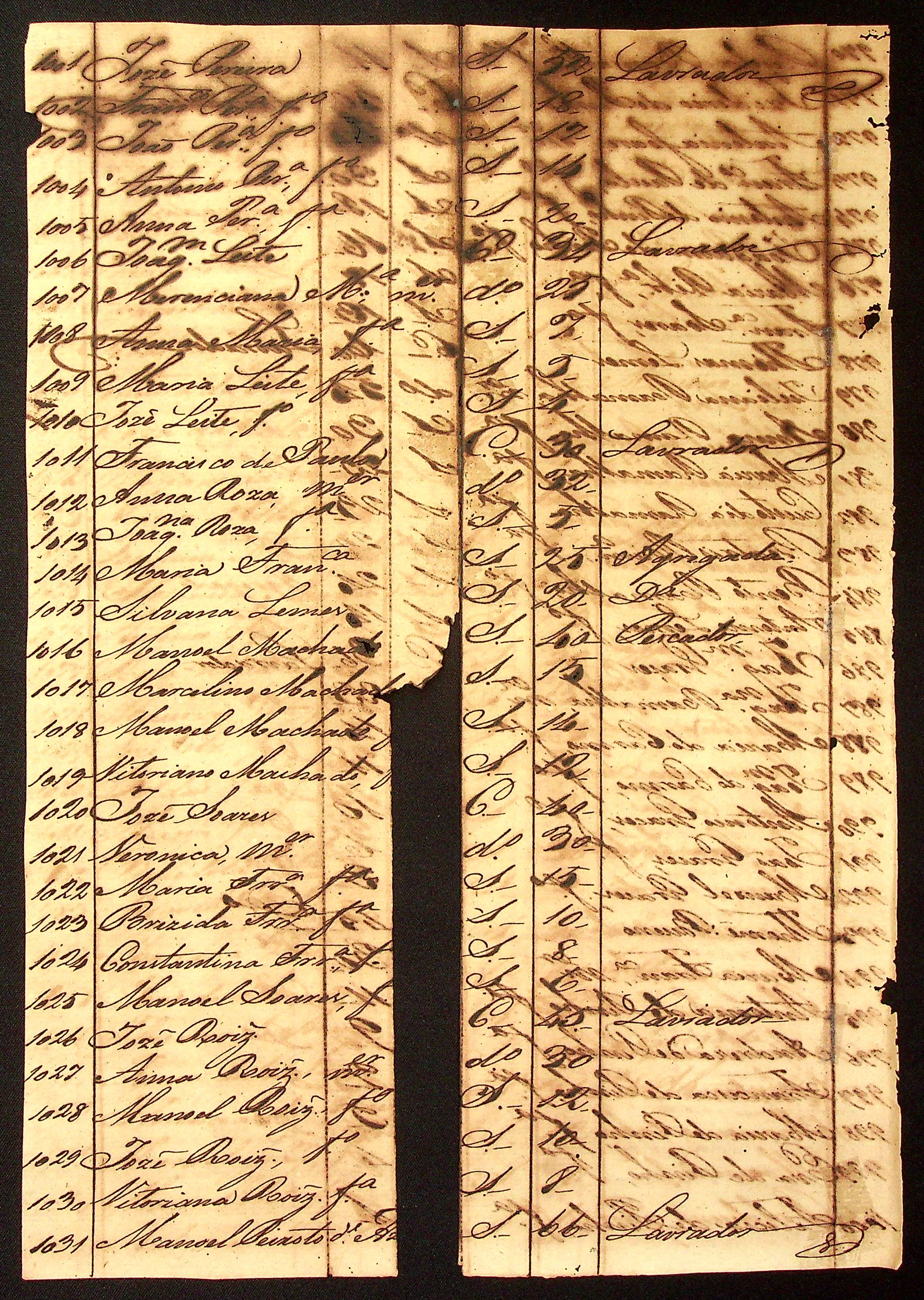 MAPA DE POPULAÇÃO do distrito de Serra Acima, tirada pelo Capitão da 3ª Companhia das Ordenanças Apolinário de Oliveira Gago.