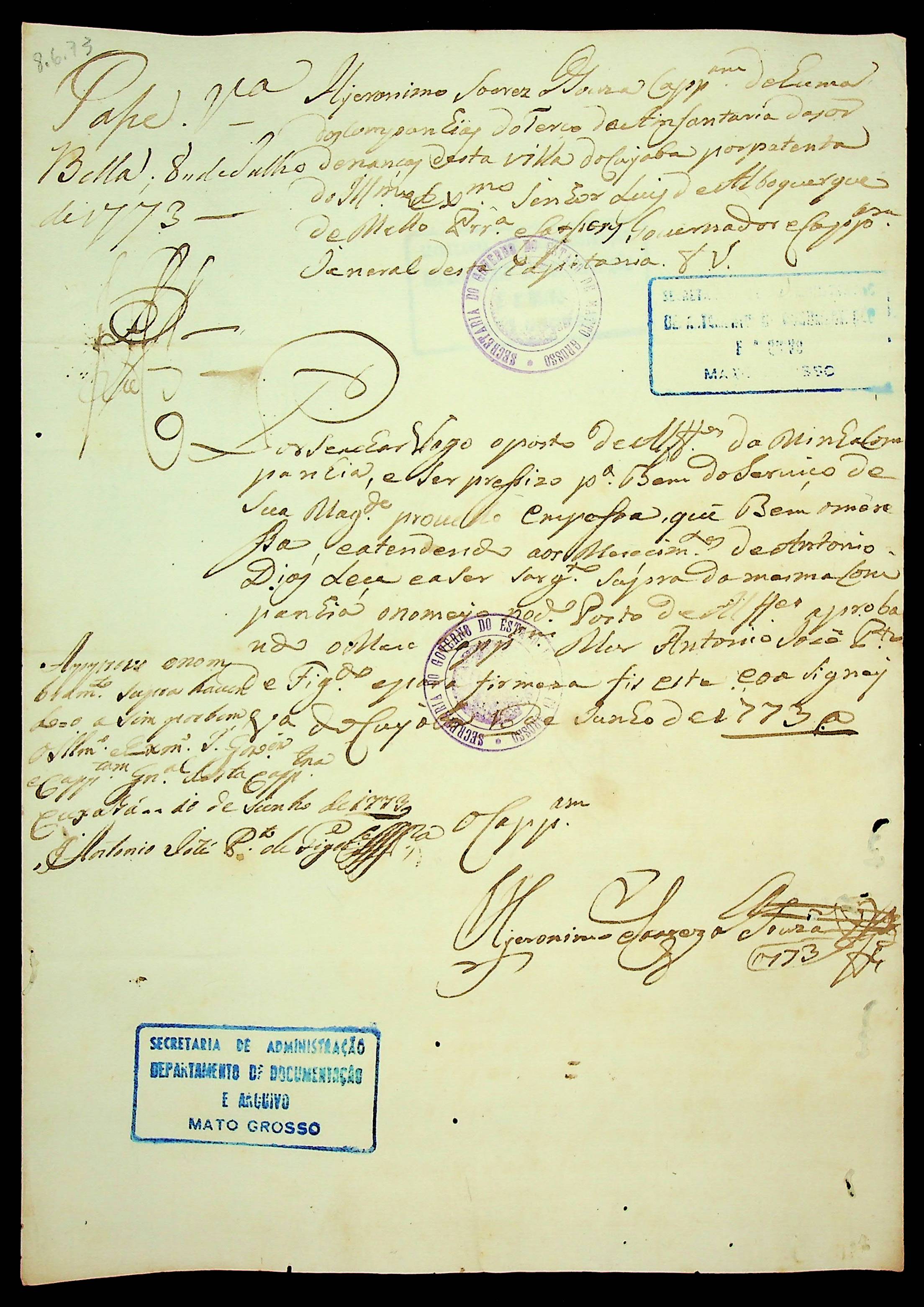NOMEAÇÃO de Antônio Dias ao posto de Alferes da Companhia [do Terço da Infantaria de Ordenanças], passada pelo Capitão Hyeronimo Soares Souza.