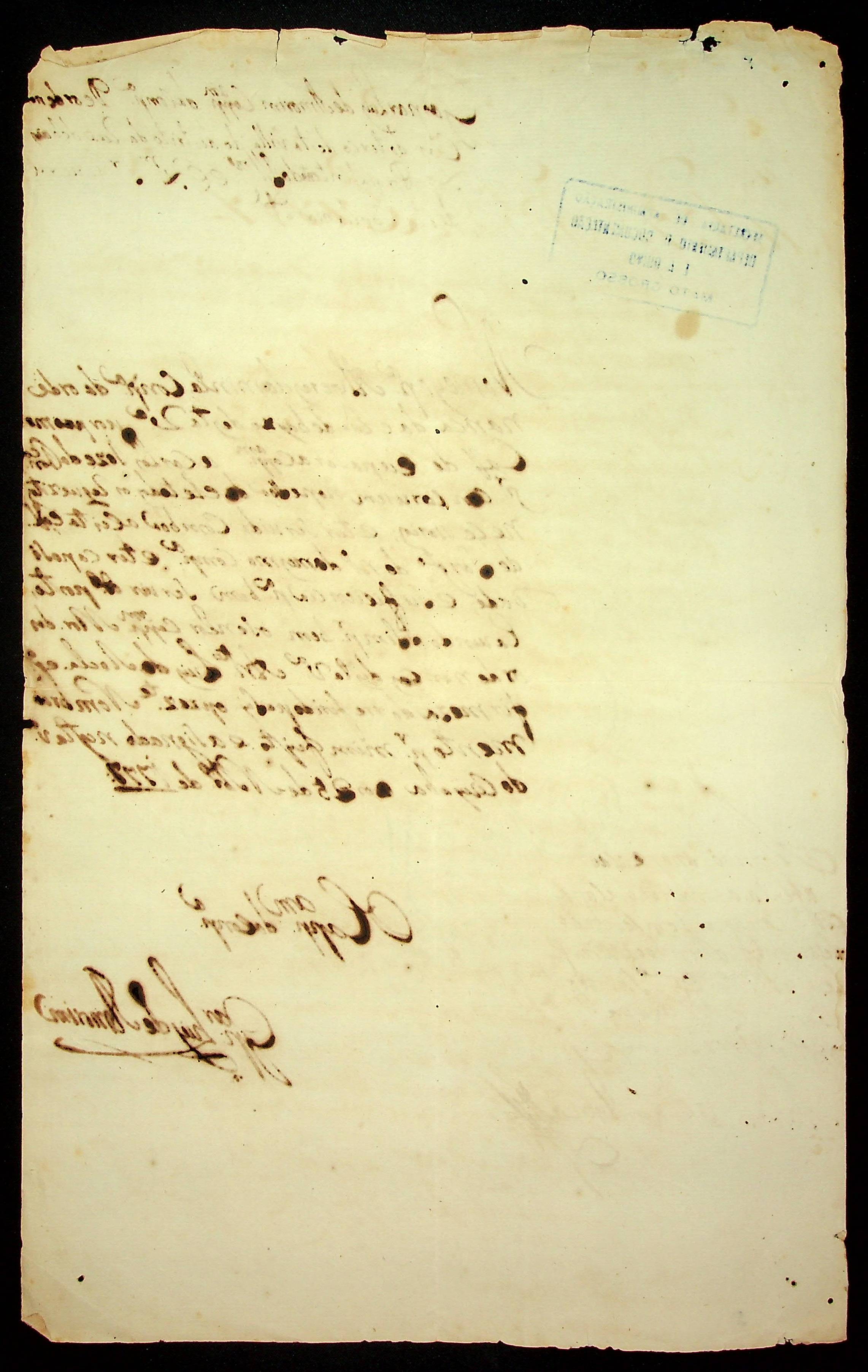 NOMEAÇÃO de Carlos José [Fonseca] ao posto de Alferes da Companhia da Ordenança do Rio de Baixo, Passada pelo Capitão de Ordenanças Gaspar de Luís de Amorim.