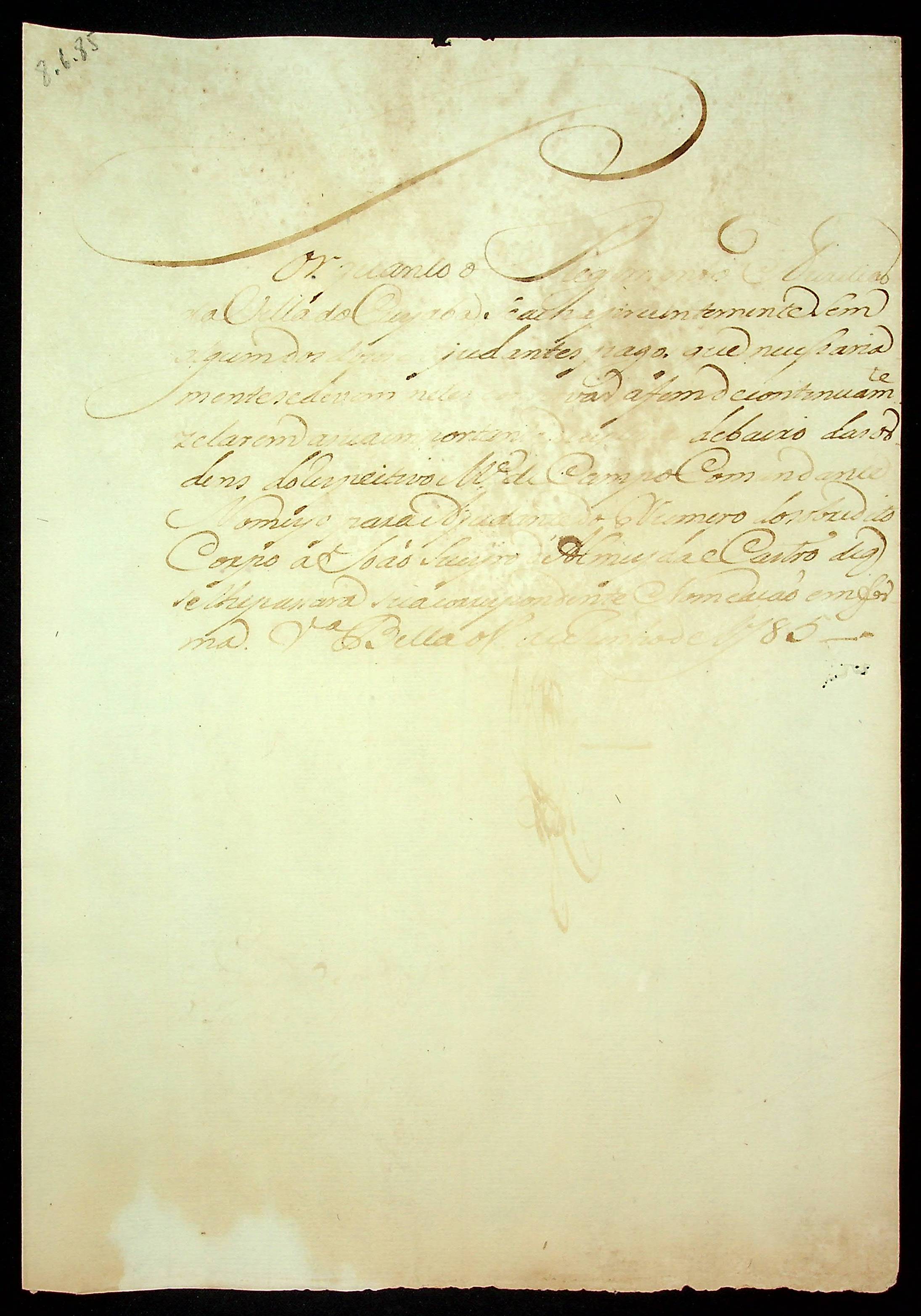 NOMEAÇÃO de João [Soeiro] de Almeida e Castro ao Cargo de Ajudante do número do regimento e Presídio da Vila do Cuiabá passada pelo [Governador e Capitão General da Capitania de Mato Grosso Luiz de Albuquerque de Mello Pereira e Cáceres].