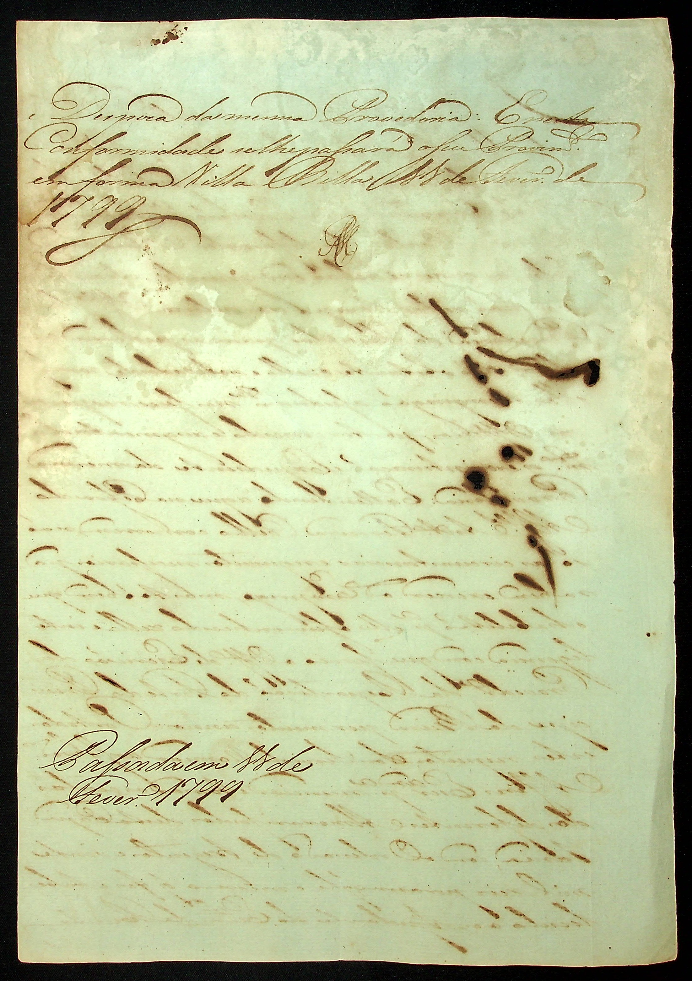 NOMEAÇÃO expedida pelo [Governador e Capitão-General da Capitania de Mato Grosso, Caetano Pinto de Miranda e Montenegro] nomeando o Alferes Antônio Ferreira Coelho, para servir o oficio de Escrivão da Real Fazenda da Capitania de Mato Grosso.
