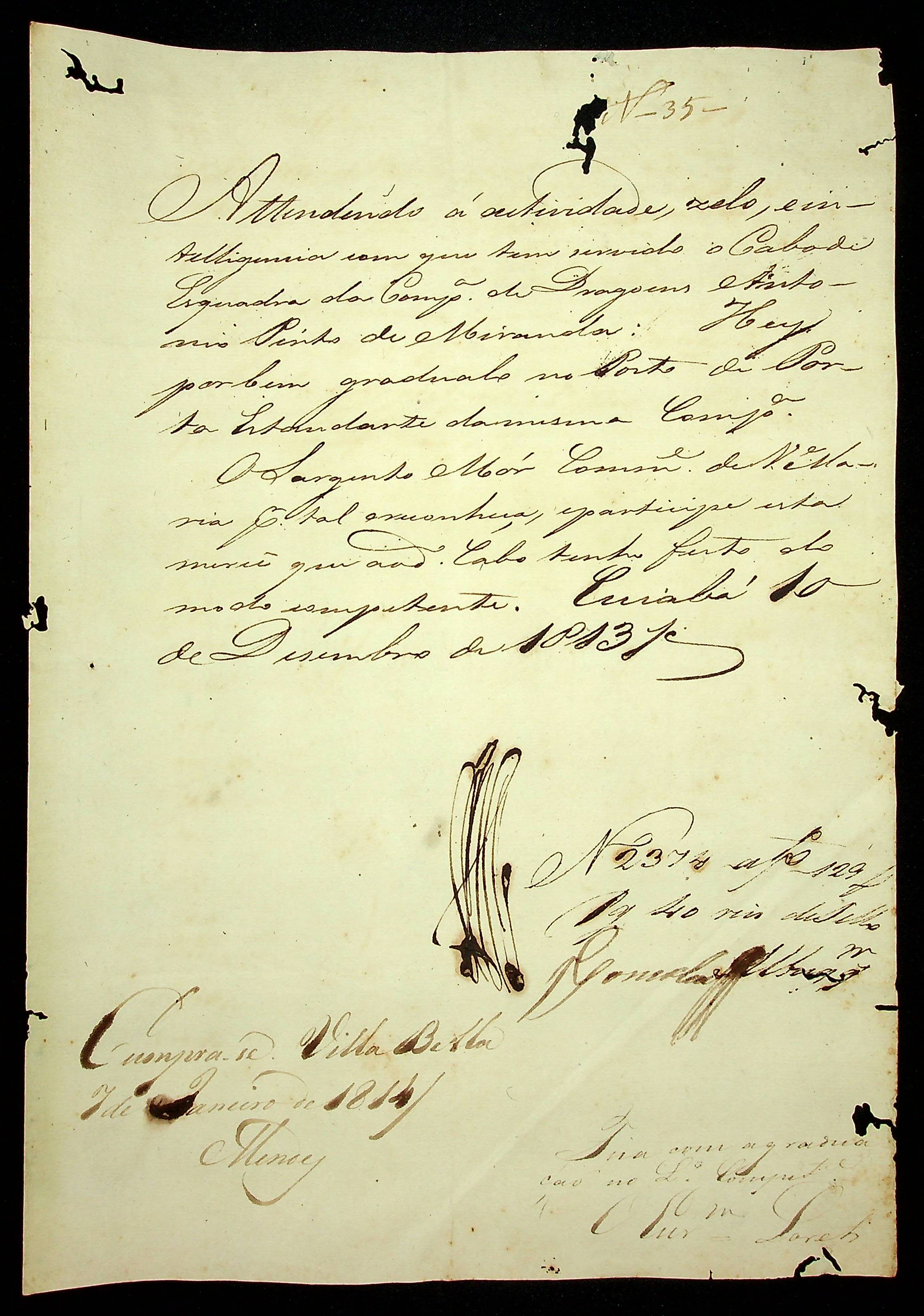 NOMEAÇÃO do Cabo de Esquadra da Companhia de Dragões Antônio Pinto de Miranda para o posto de Porta Estandarte da mesma companhia.