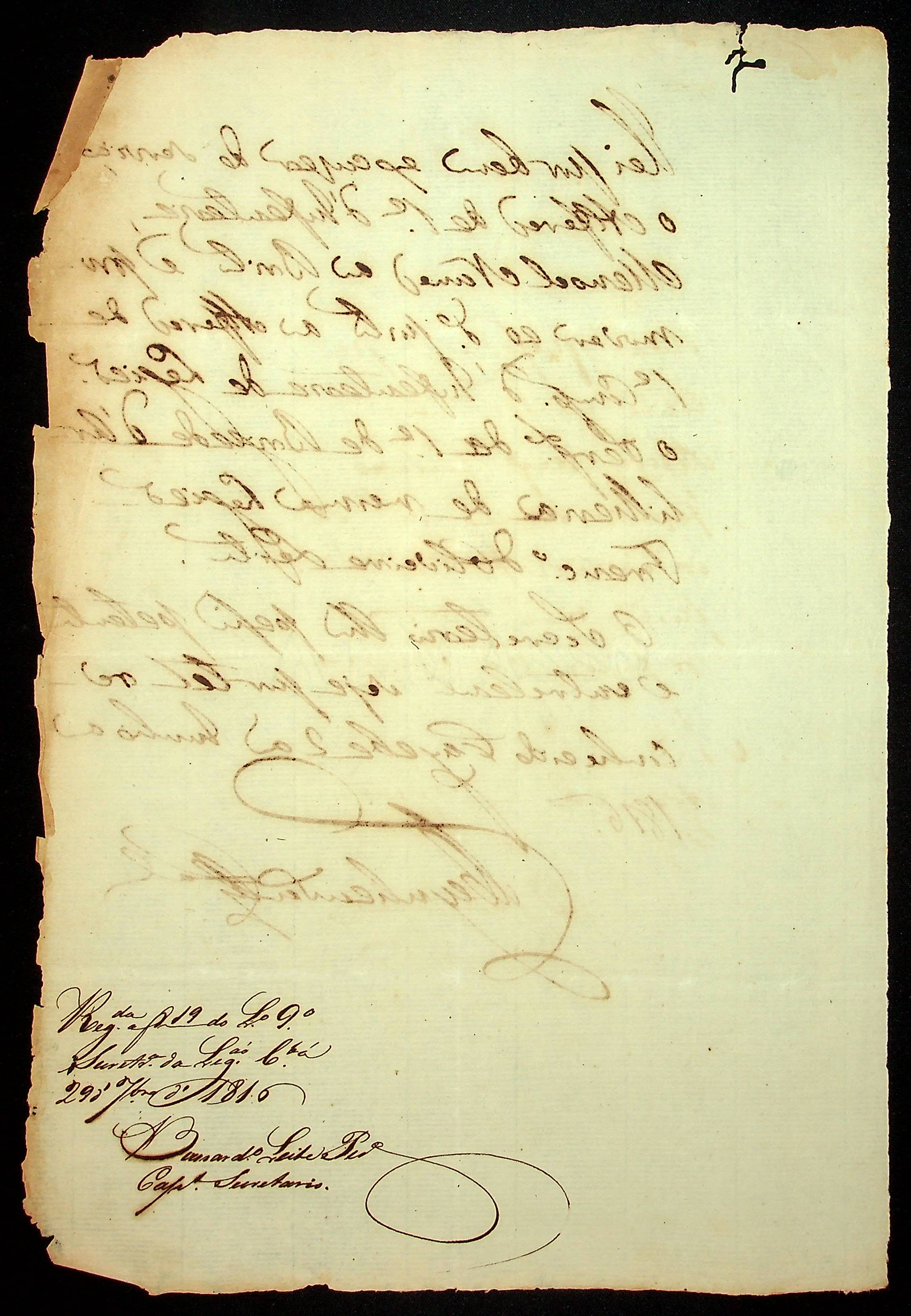 NOMEAÇÃO do Alferes da primeira infantaria Manoel Nunes de Brito ao posto de Sargento da primeira Brigada de Milicia, passada pelo [Governador e Capitão General da Capitania de Mato Grosso João Carlos Augusto de Oeynhausen e Gravemberg].
