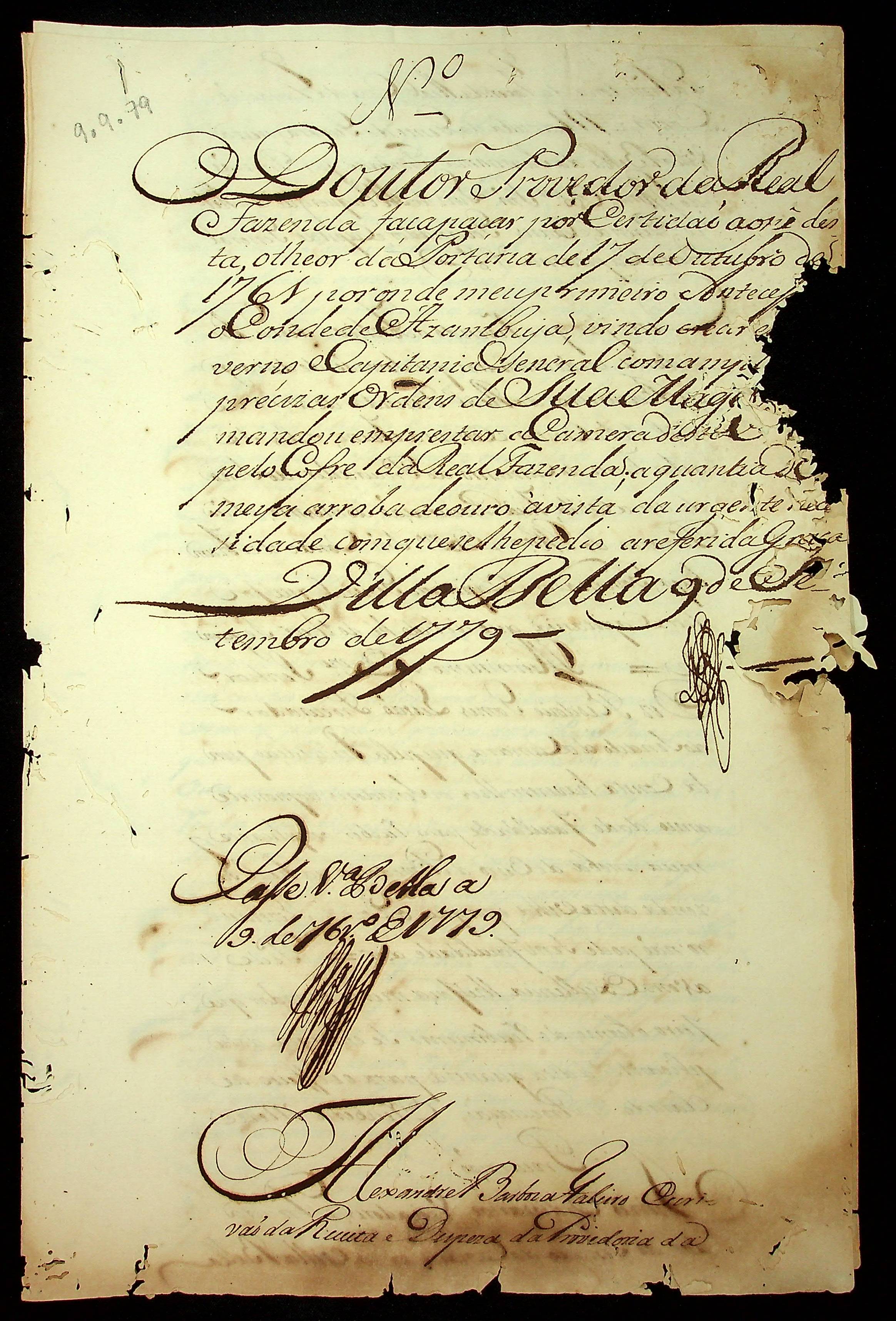 NOTIFICAÇÃO do [Governador e Capitão-General da Capitania de Mato Grosso Luiz de Albuquerque de Melo Pereira e Cáceres] ao Provedor da Real Fazenda e Intendência do Ouro Felipe José Nogueira Coelho.