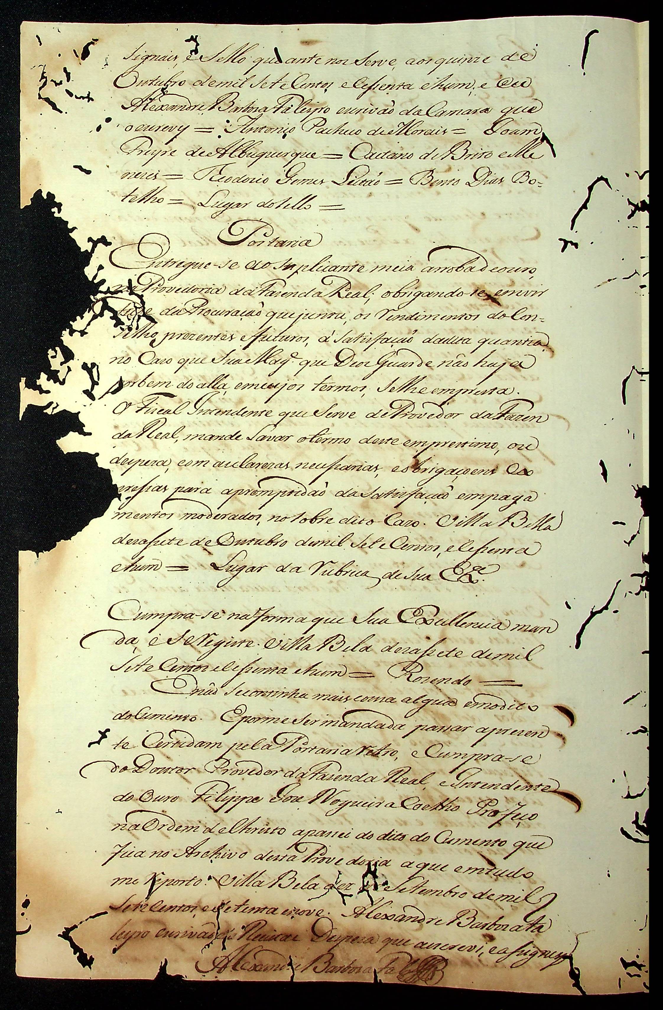NOTIFICAÇÃO do [Governador e Capitão-General da Capitania de Mato Grosso Luiz de Albuquerque de Melo Pereira e Cáceres] ao Provedor da Real Fazenda e Intendência do Ouro Felipe José Nogueira Coelho.