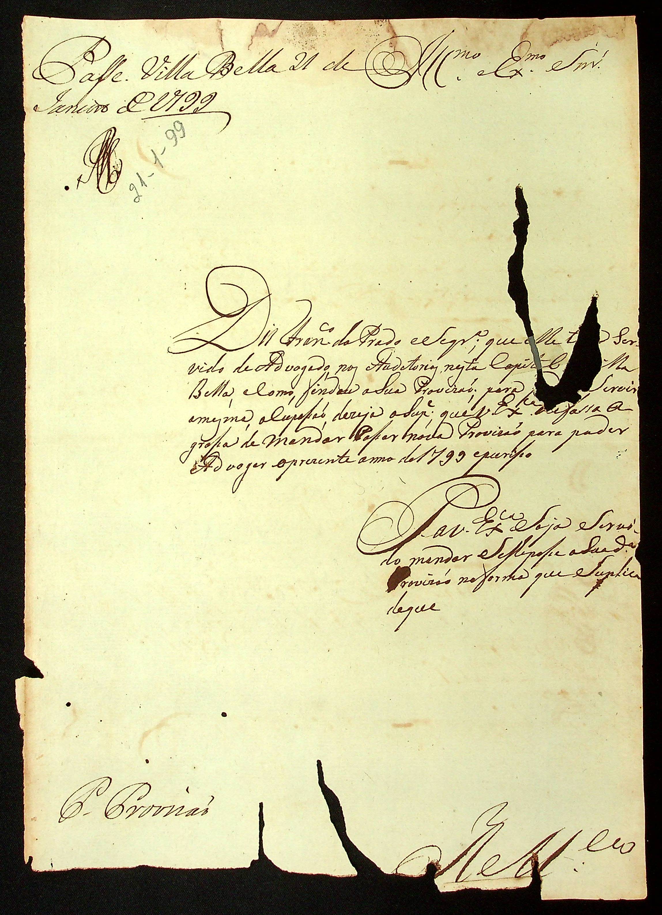 NOTIFICAÇÃO feita pelo [Secretário de Governo] Joaquim José Cavalcante de Albuquerque Lins a Francisco do Prado e Siqueira para o pagamento de novos direitos e assim passar provisão para advogar nos Auditórios de Vila Bela.