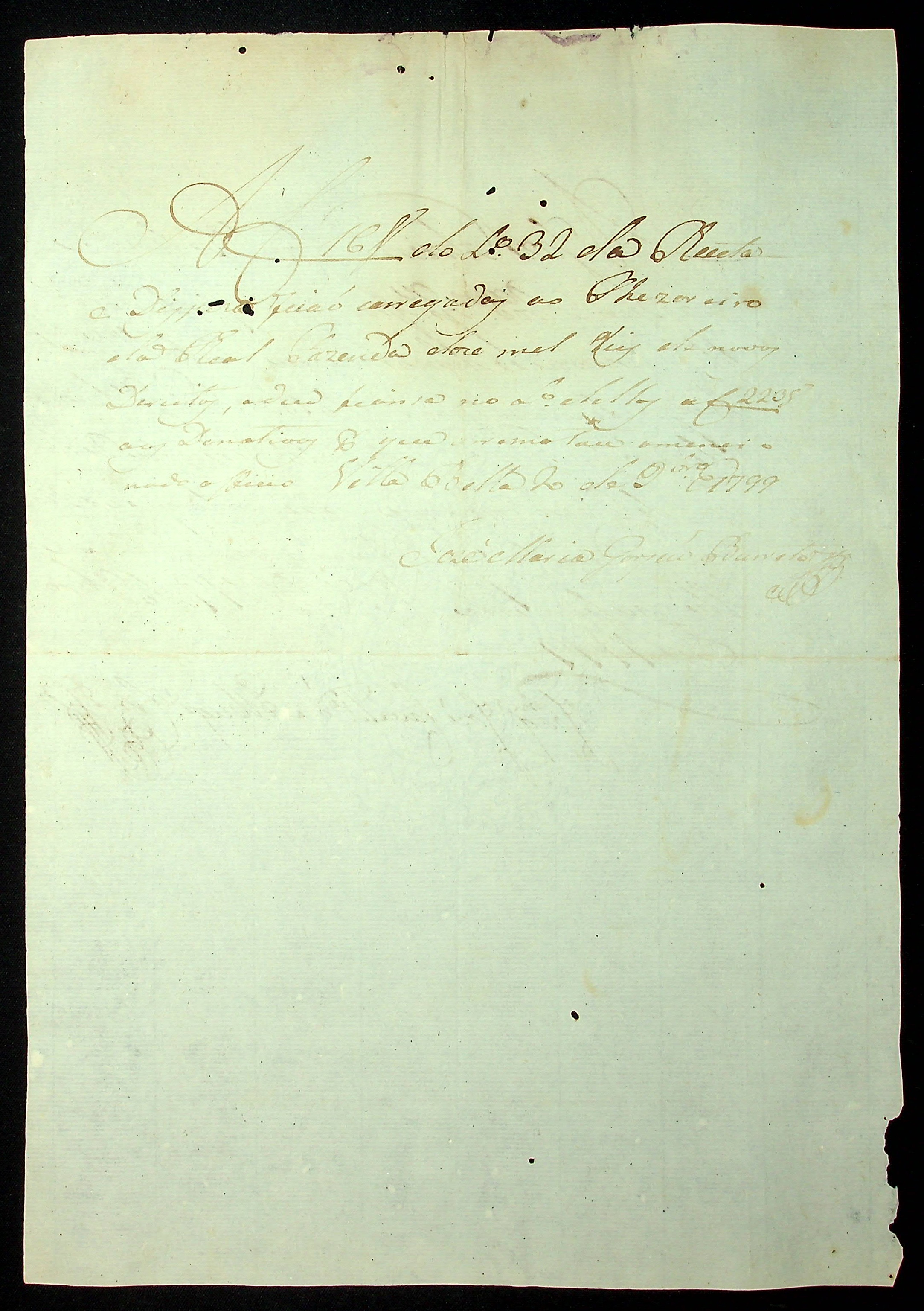 NOTIFICAÇÃO feita pelo [Secretário de Governo] Joaquim José Cavalcante de Albuquerque Lins para José Freire da Silva para pagamento dos novos direitos e assim receber a Provisão para servir de Escrivão da Câmara e Almotaçaria de Vila Bela.