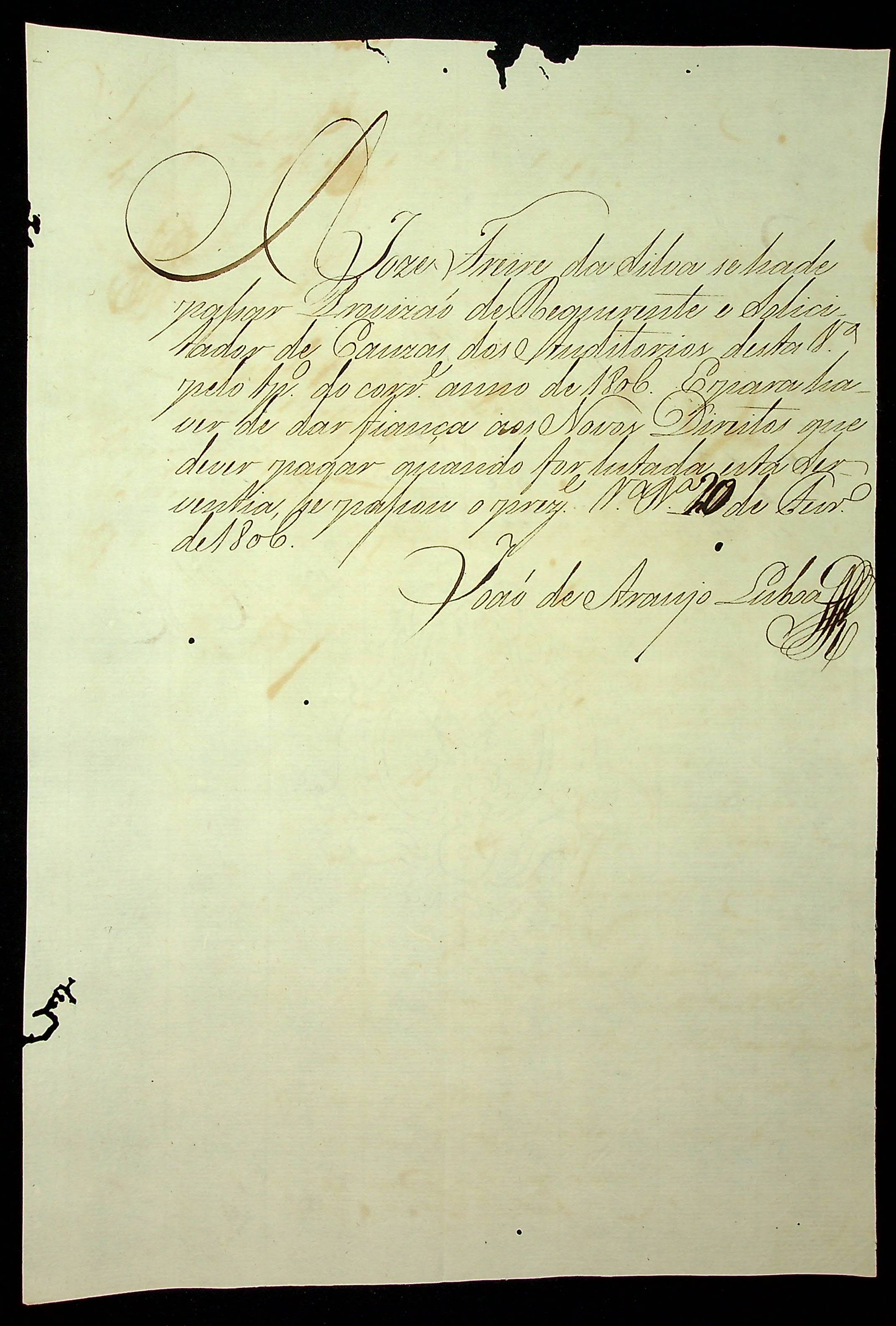 NOTIFICAÇÃO feita pelo [Secretário de Governo] João de Araújo Lisboa à José Freire da Silva para pagamento dos novos direitos o ofício de Requerente e Solicitador das Causas dos Auditórios de [Vila Bela].