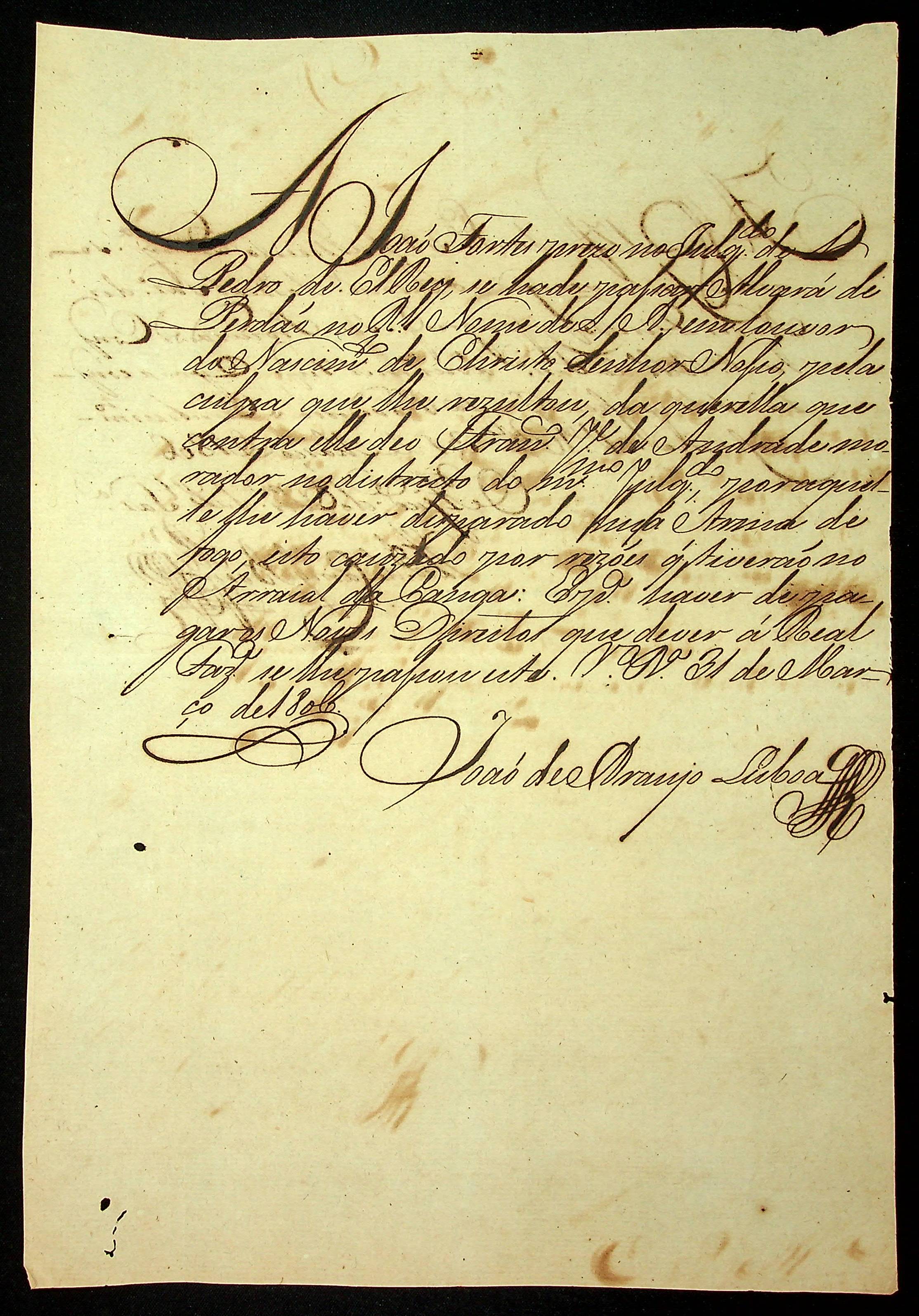 NOTIFICAÇÃO feita pelo [Secretário de Governo] João de Araújo Lisboa à João Fortes para assim receber o Alvará de perdão.