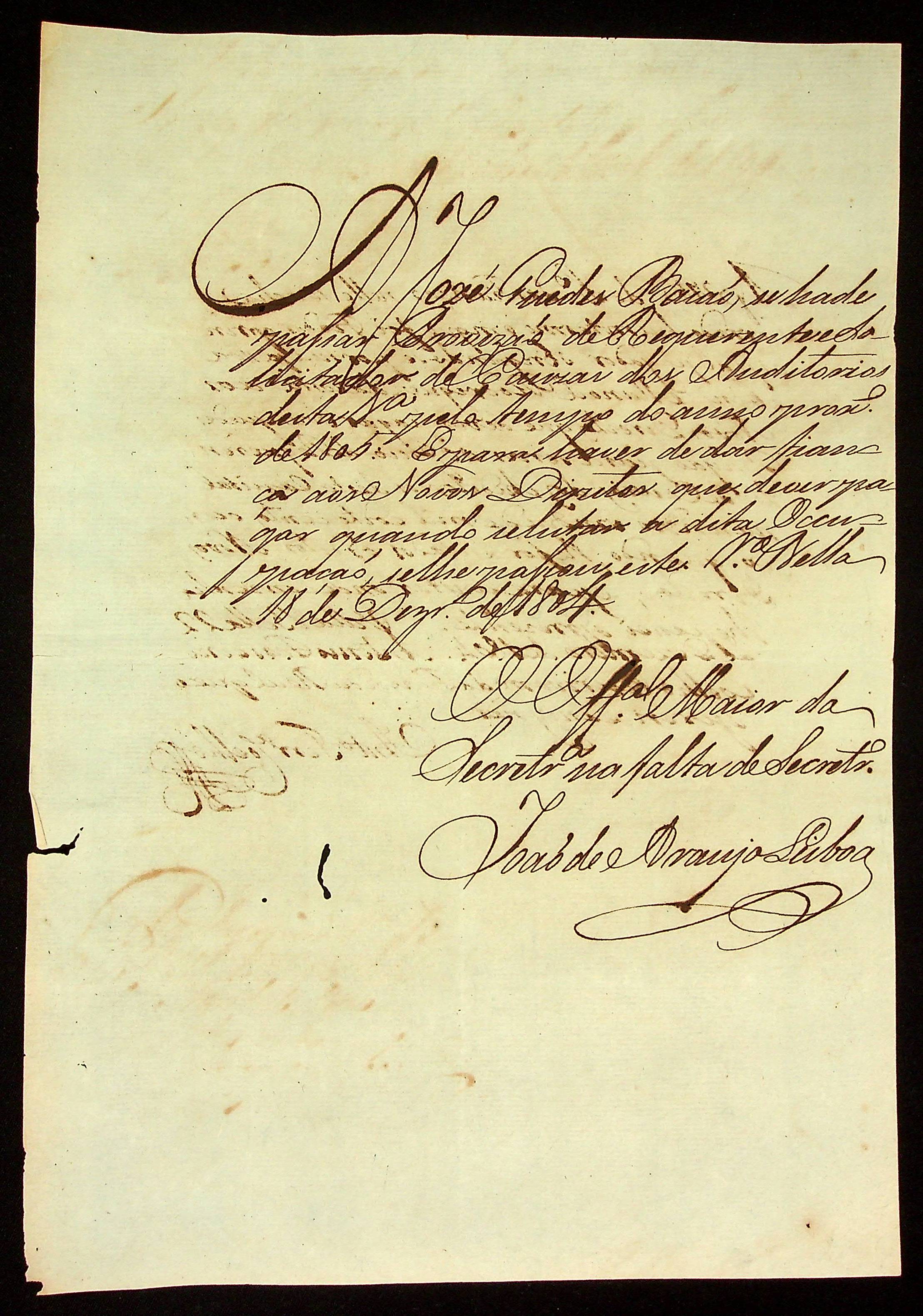 NOTIFICAÇÃO do oficial maior da secretaria na falta do secretário João Araújo Lisboa à José Guedes Baião.