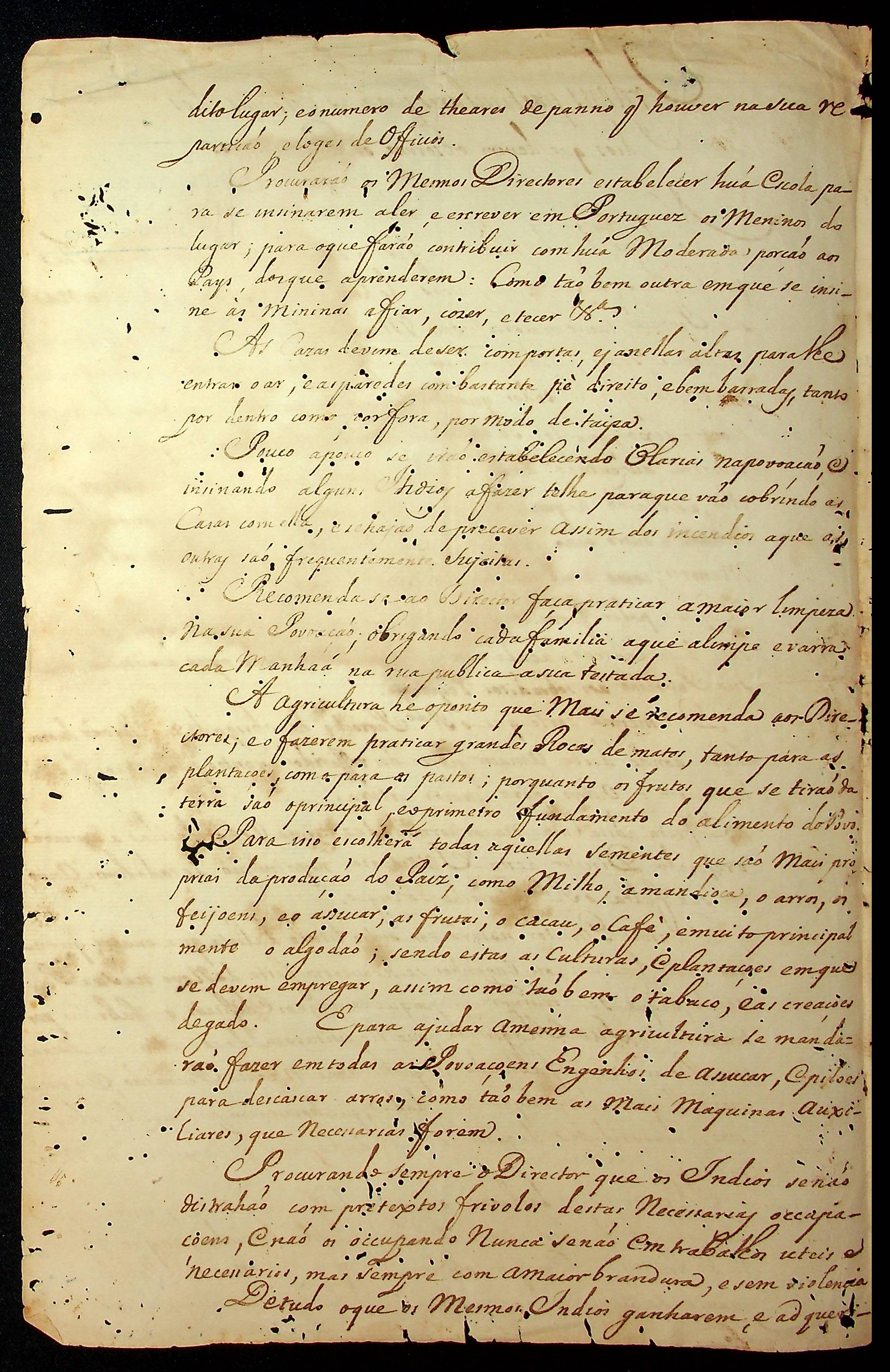 ORDEM do Governador e Capitão-General da Capitania de Mato Grosso Luiz Pinto de Souza Coutinho para as colônias dos índios que devem observar seus diretores.