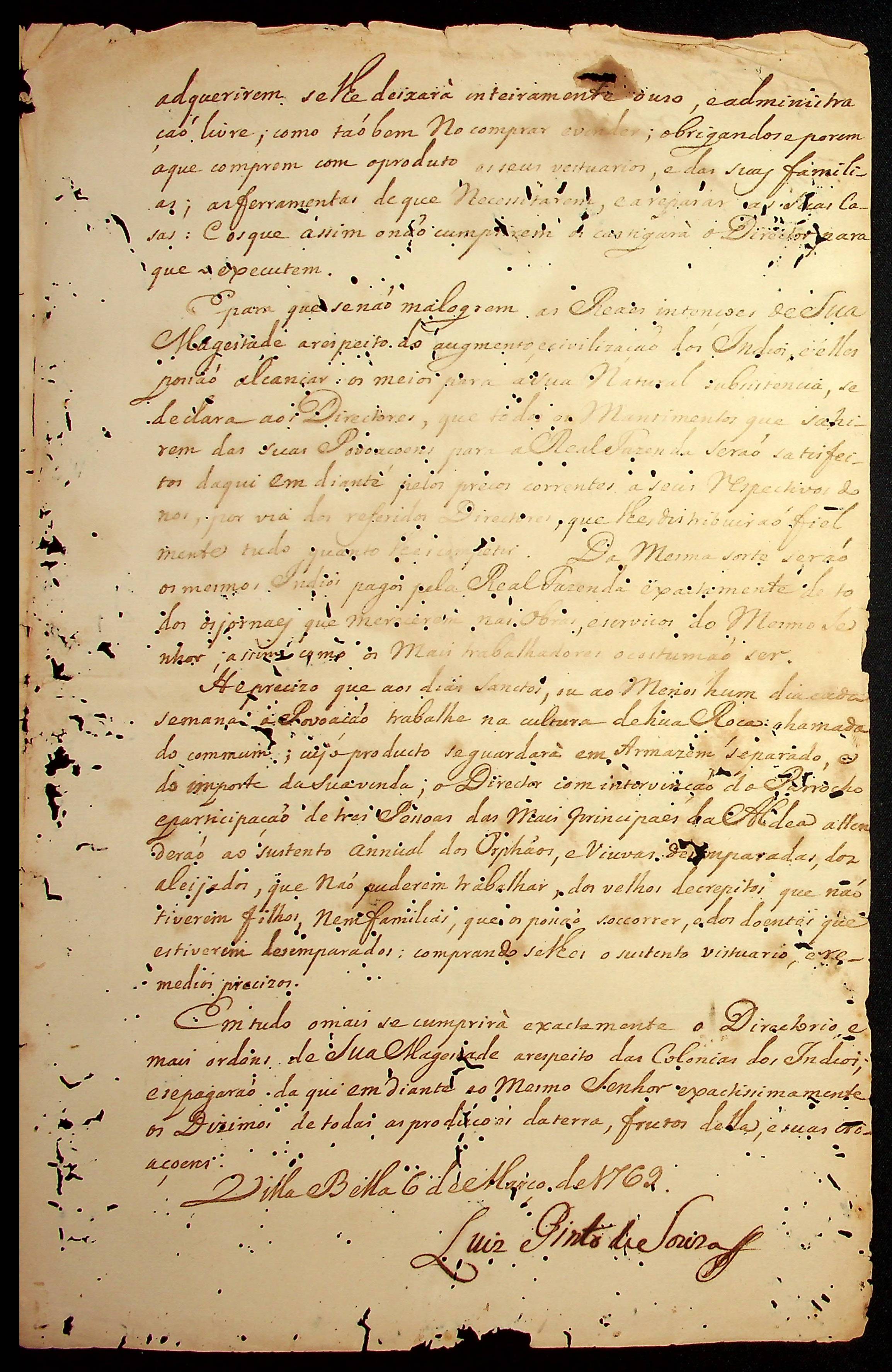 ORDEM do Governador e Capitão-General da Capitania de Mato Grosso Luiz Pinto de Souza Coutinho para as colônias dos índios que devem observar seus diretores.
