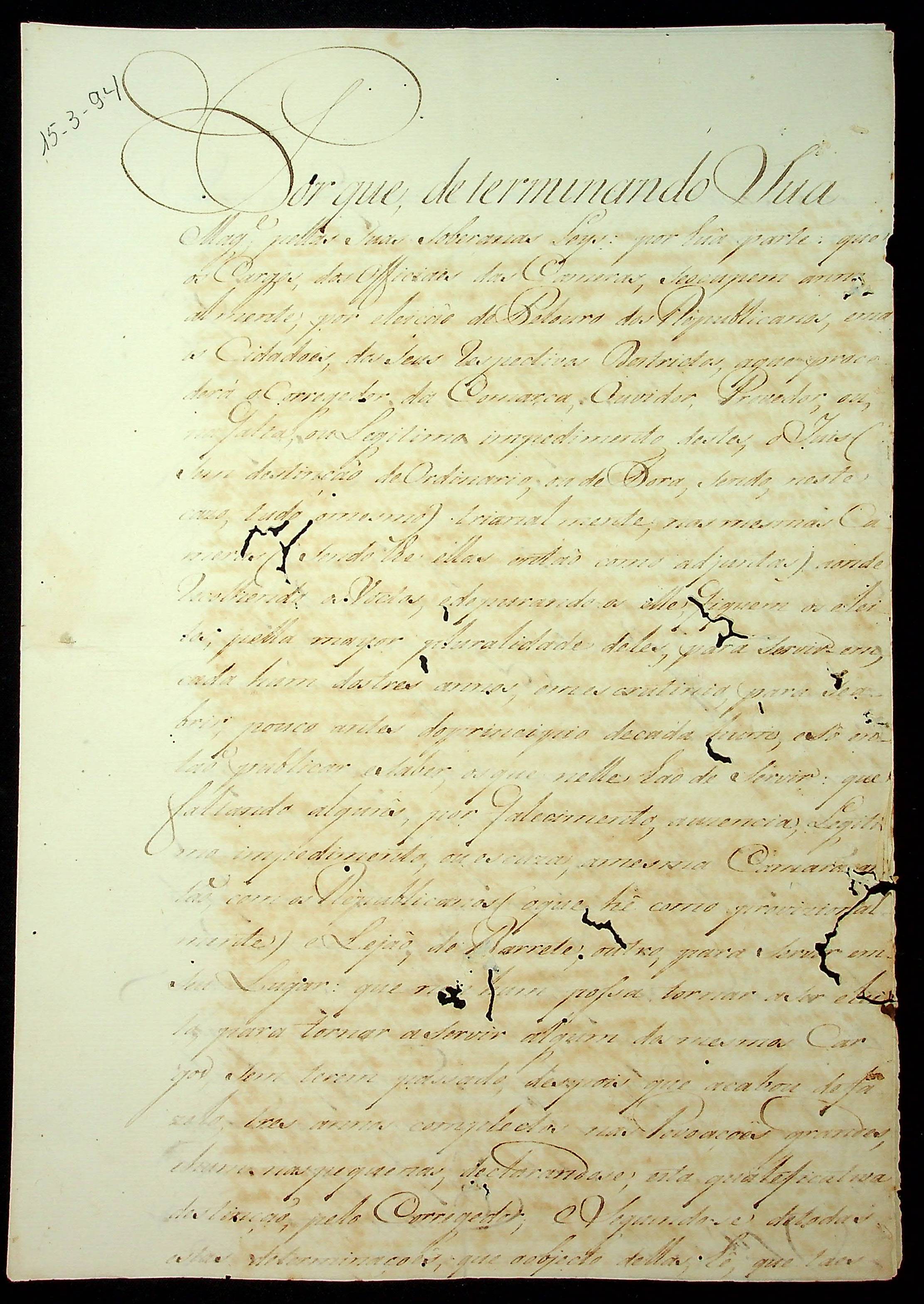 ORDEM do Governador e Capitão-General da Capitania de Mato Grosso João de Albuquerque de Melo Pereira e Cáceres ao Juiz de Fora da Vila do Cuiabá João Baptista Duarte.