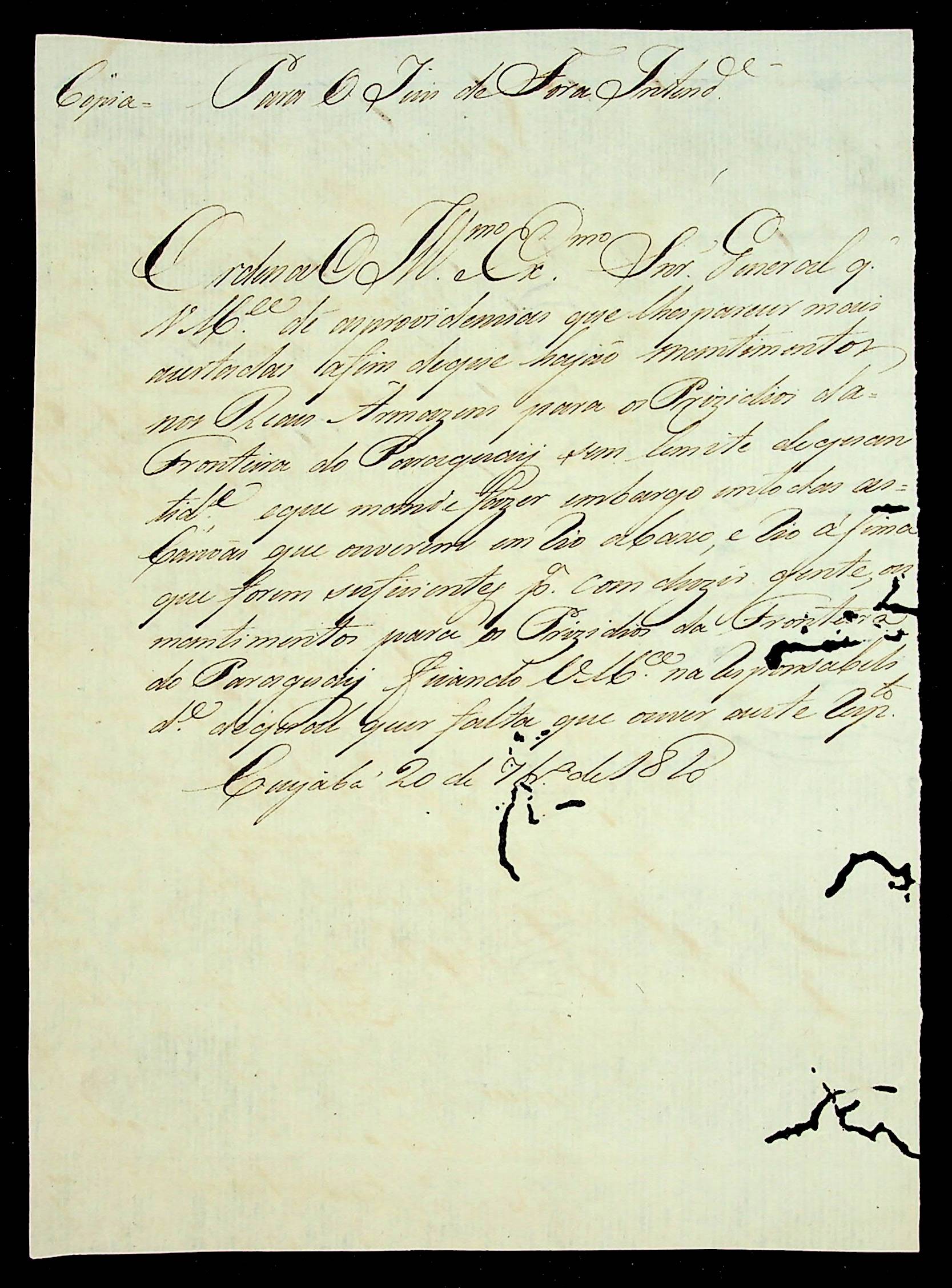 ORDEM (cópia) do [Governador e Capitão-General da Capitania de Mato Grosso João Carlos Augusto d´ Oeynhausen e Gravemberg] ao Juiz de Fora Intendente.