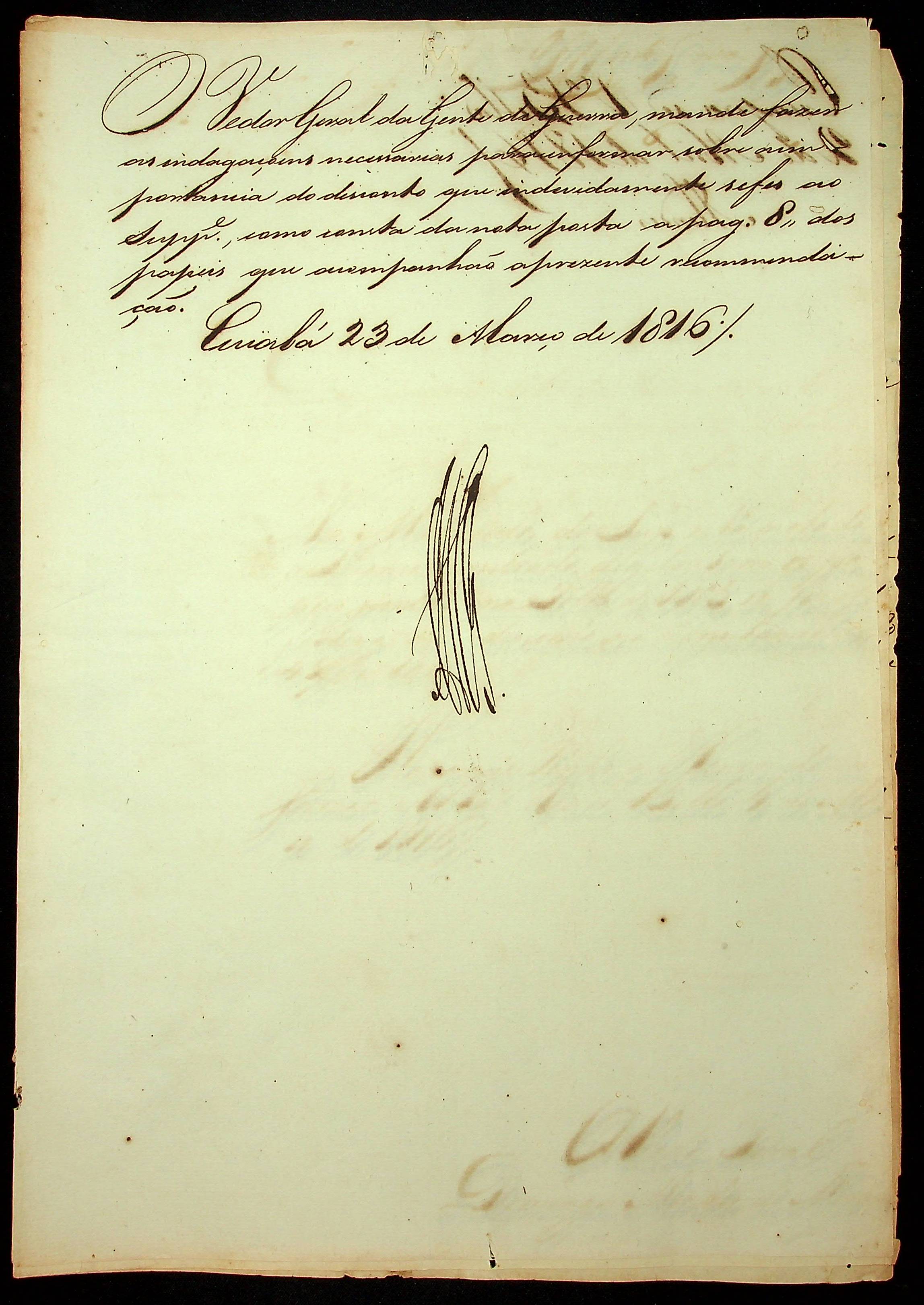 ORDEM do Governador e Capitão General da Capitania de Mato Grosso [João Carlos Augusto de Oeynhausen e Gravemberg] ao Vedor Geral Domingos Mendes de Miranda.