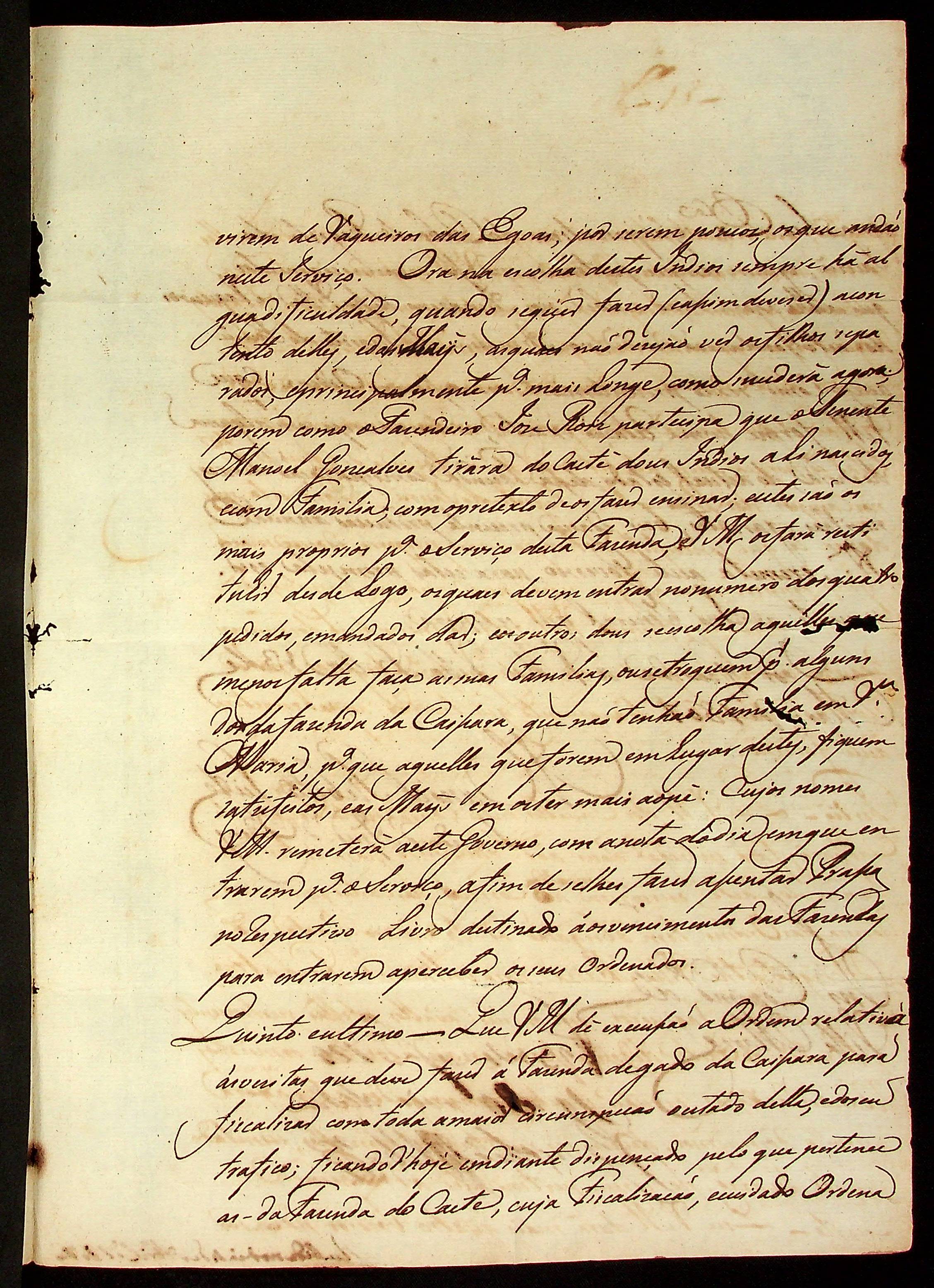 ORDEM da [Terceira Junta Governativa da Capitania de Mato Grosso] passada pelo Ajudante de Ordens Manoel Rebelo Leite ao Comandante de Vila Maria.