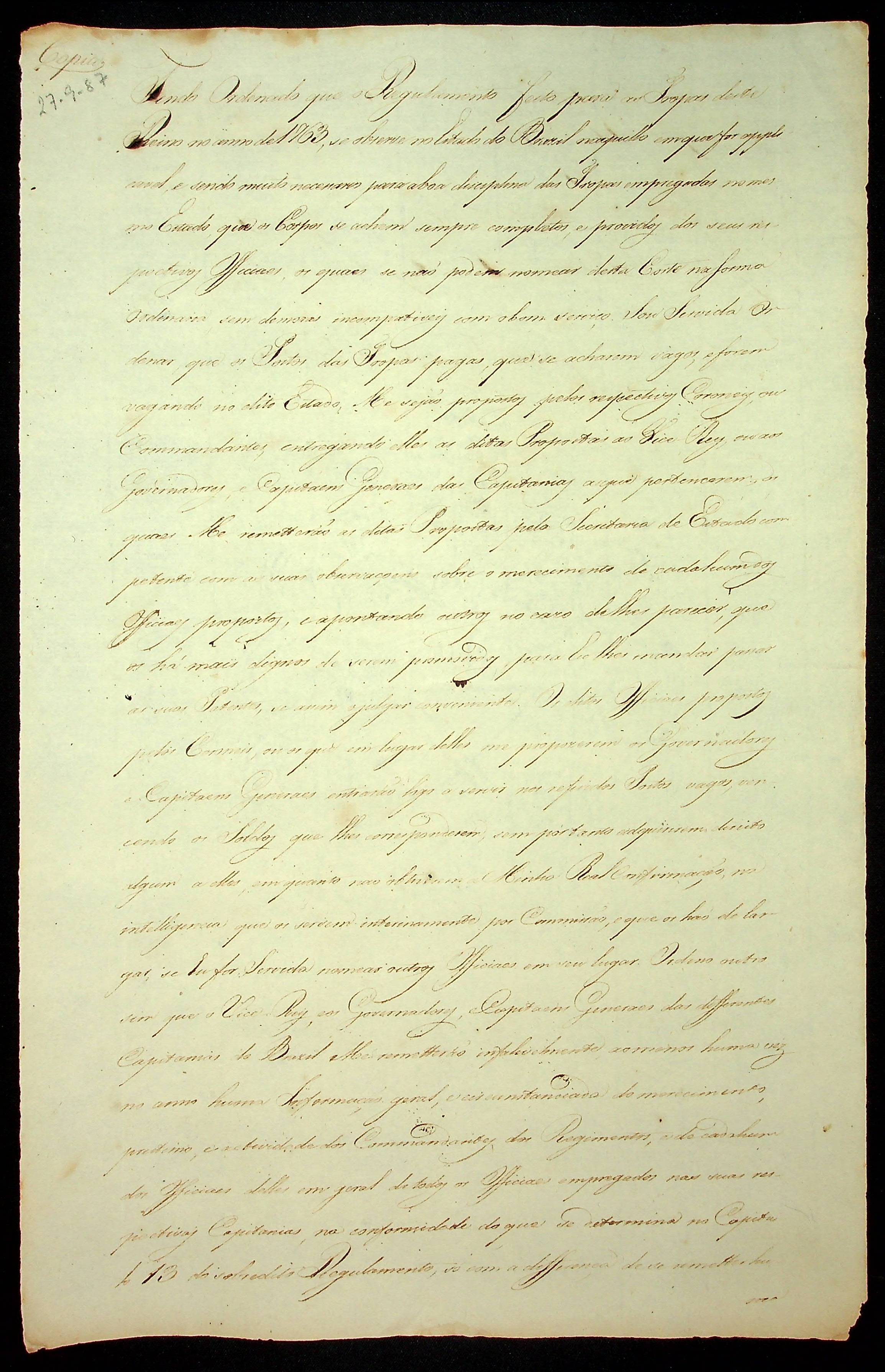 ORDEM RÉGIA da Rainha ao Vice Rei e Governadores e Capitães Generais das diferentes Capitanias do Brasil.