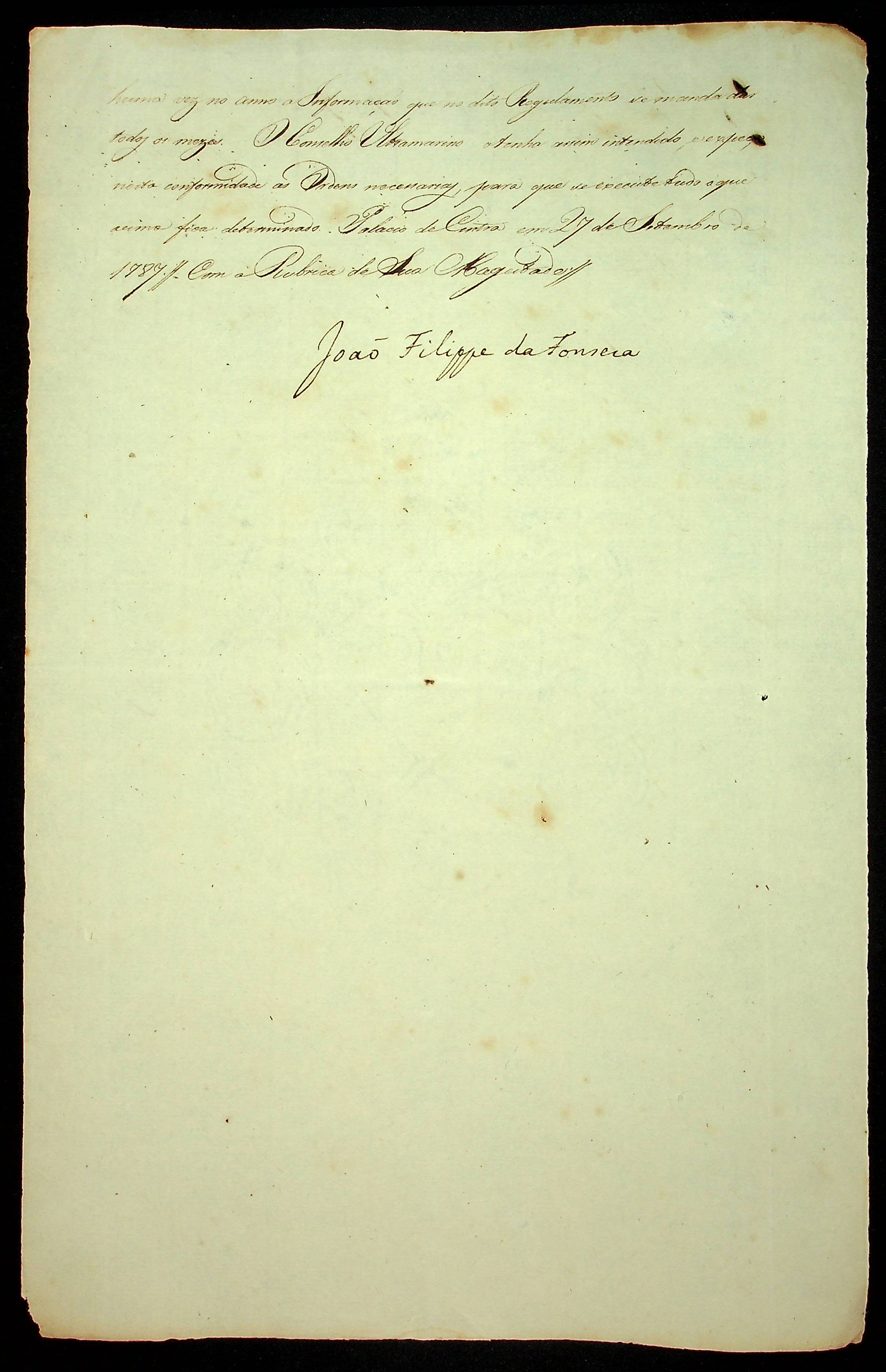 ORDEM RÉGIA da Rainha ao Vice Rei e Governadores e Capitães Generais das diferentes Capitanias do Brasil.