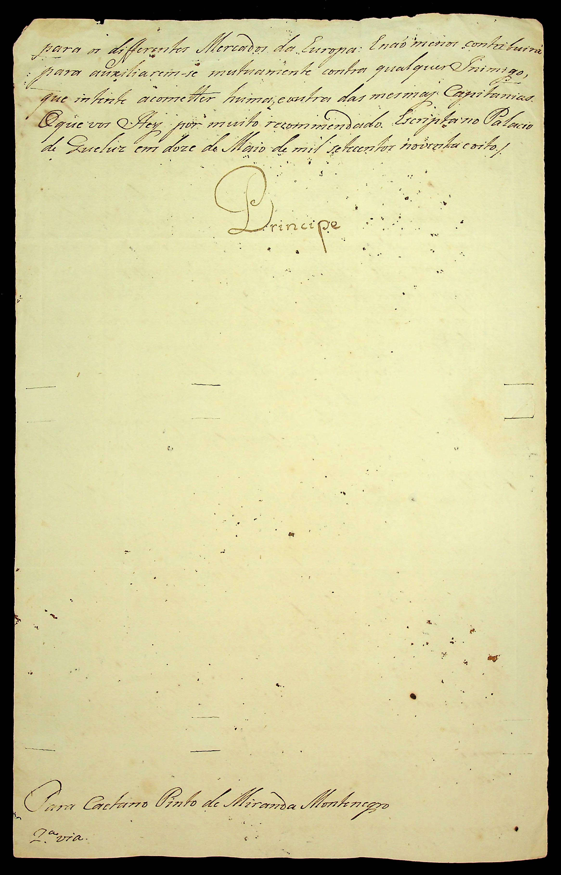 ORDEM RÉGIA da Rainha [D. Maria] ao Governador e Capitão General da Capitania de Mato Grosso Caetano Pinto de Miranda e Montenegro.