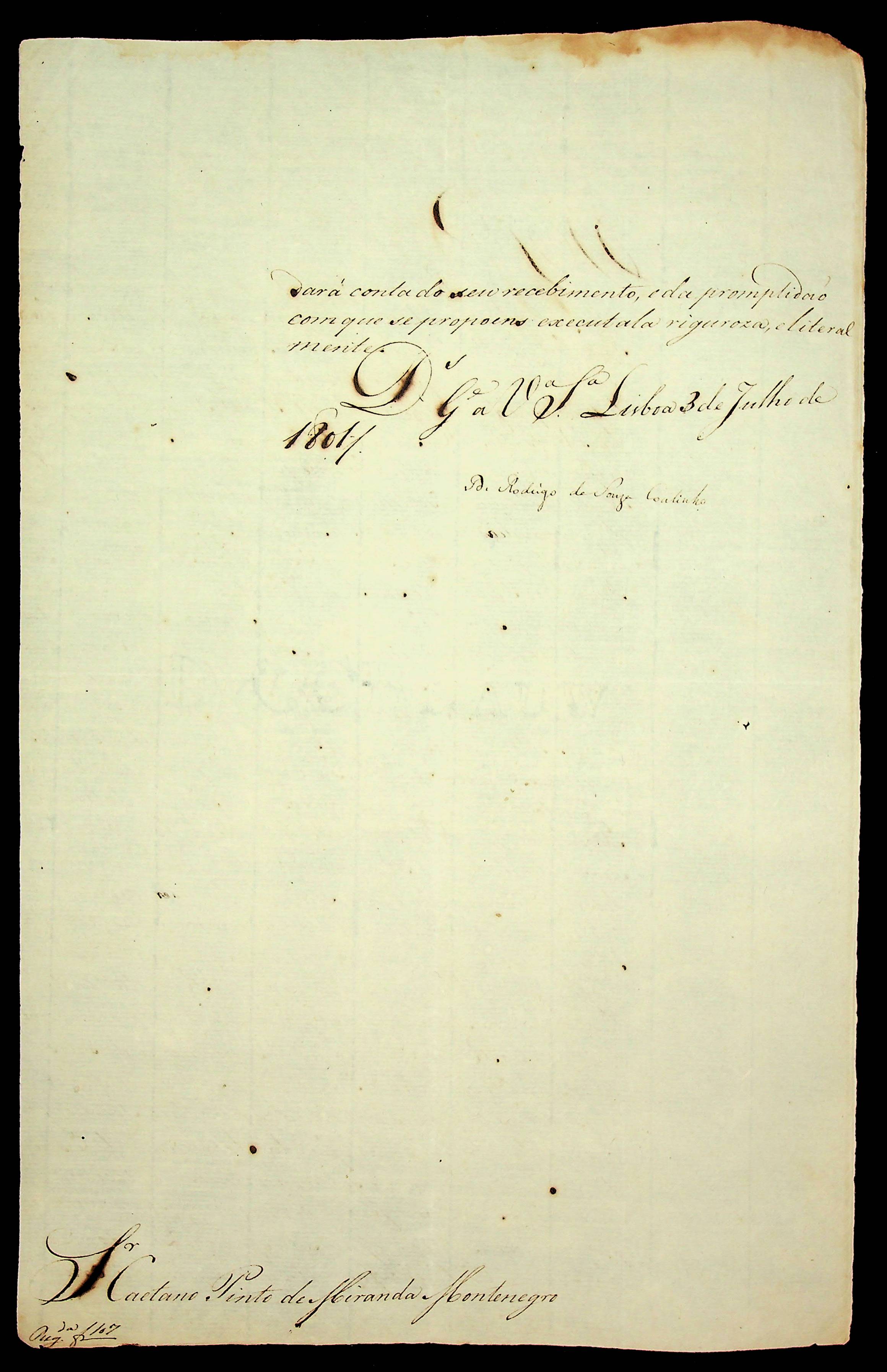 ORDEM RÉGIA do Príncipe Regente D. João ao [Governador e Capitão General da Capitania de Mato Grosso] Caetano Pinto de Miranda e Montenegro.