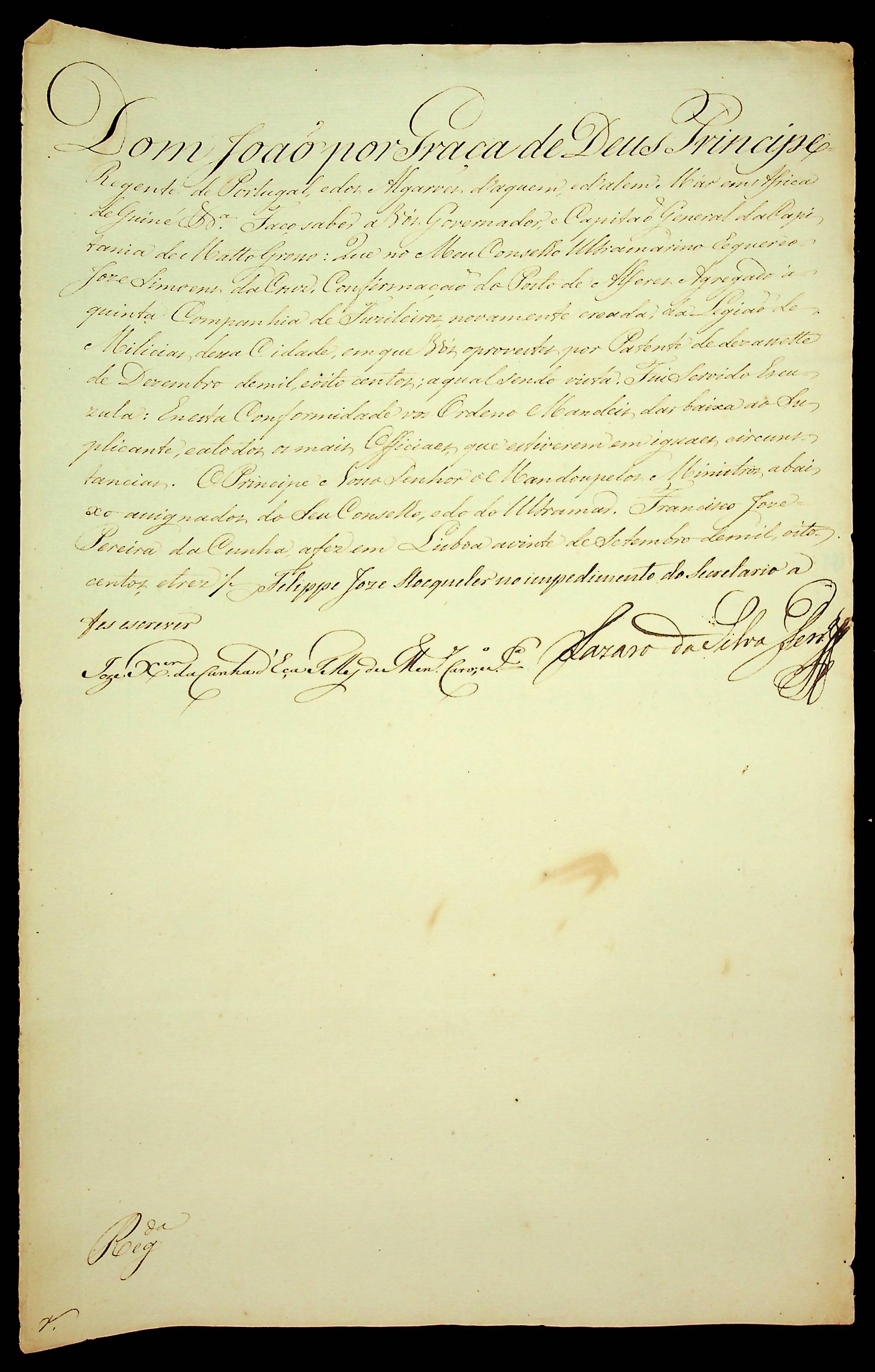 ORDEM RÉGIA do Príncipe Regente D. João ao Governador e Capitão General da Capitania de Mato Grosso.