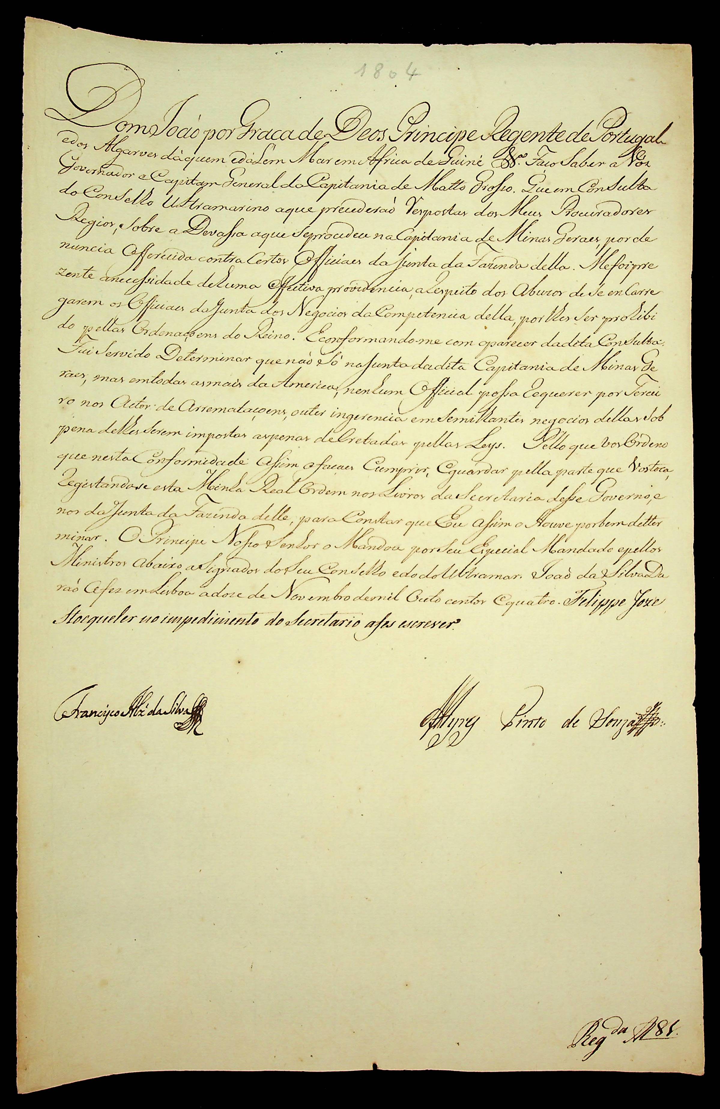 ORDEM RÉGIA do Príncipe Regente D. João ao Governador e Capitão General da Capitania de Mato Grosso [Manoel Carlos de Abreu e Menezes].