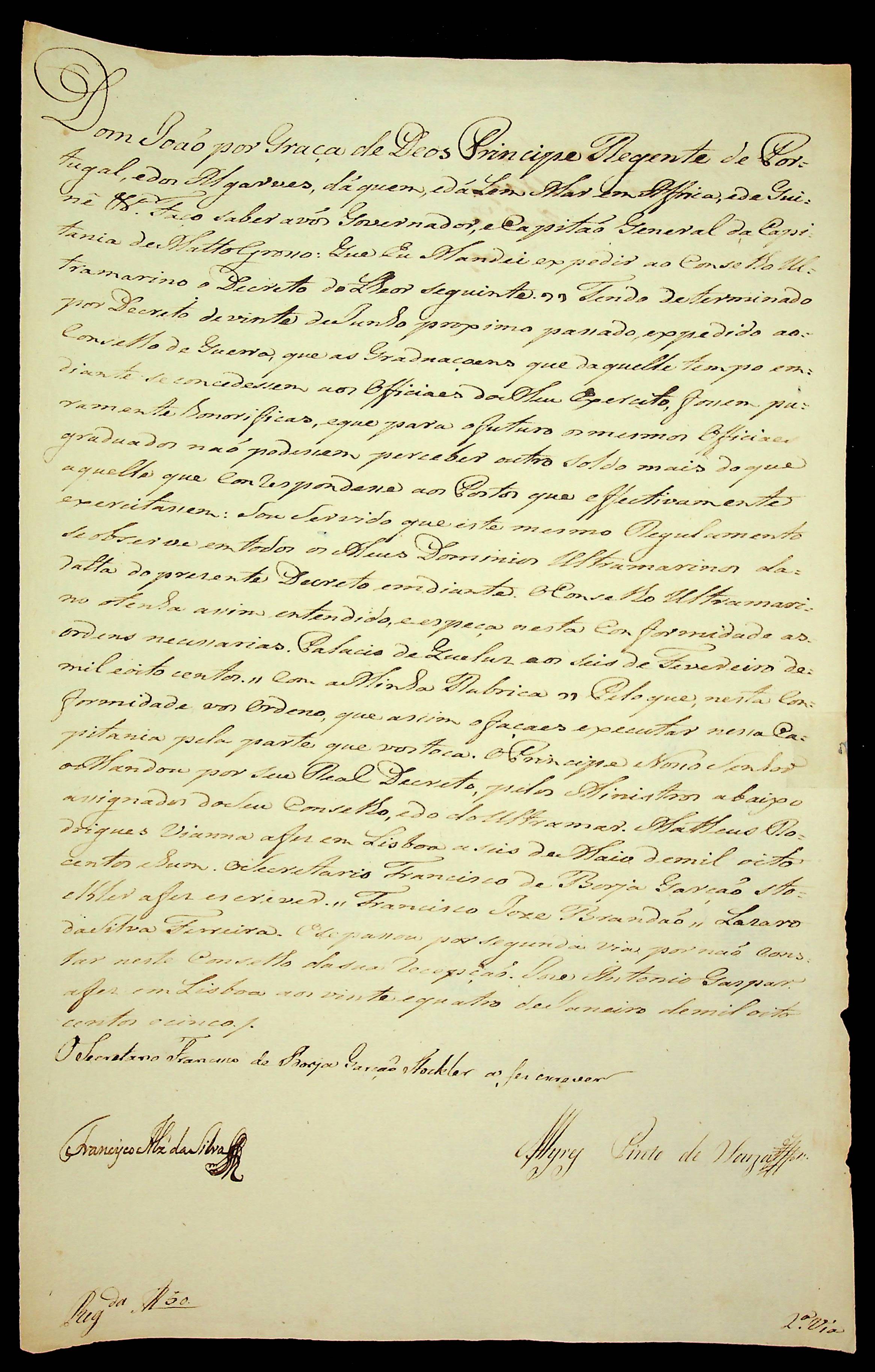 ORDEM RÉGIA do Príncipe Regente D. João ao Governador e Capitão General da Capitania de Mato Grosso [Manoel Carlos de Abreu e Menezes].