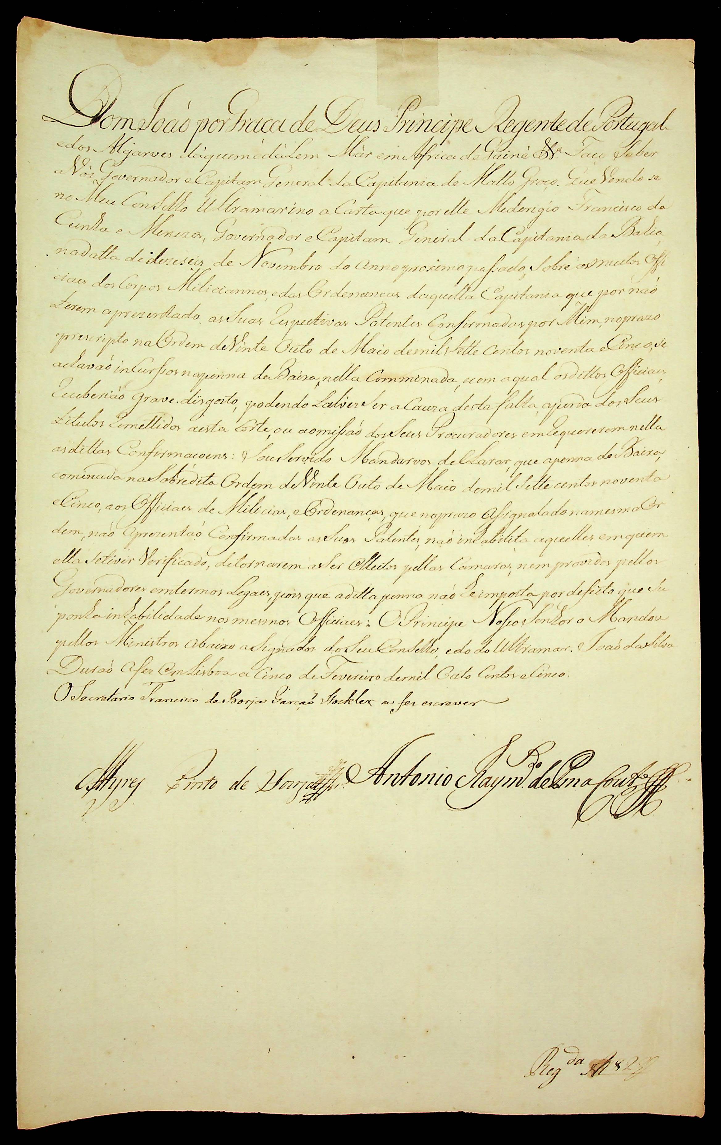 ORDEM RÉGIA do Príncipe Regente D. João ao Governador e Capitão General da Capitania de Mato Grosso [Manoel Carlos de Abreu e Menezes].
