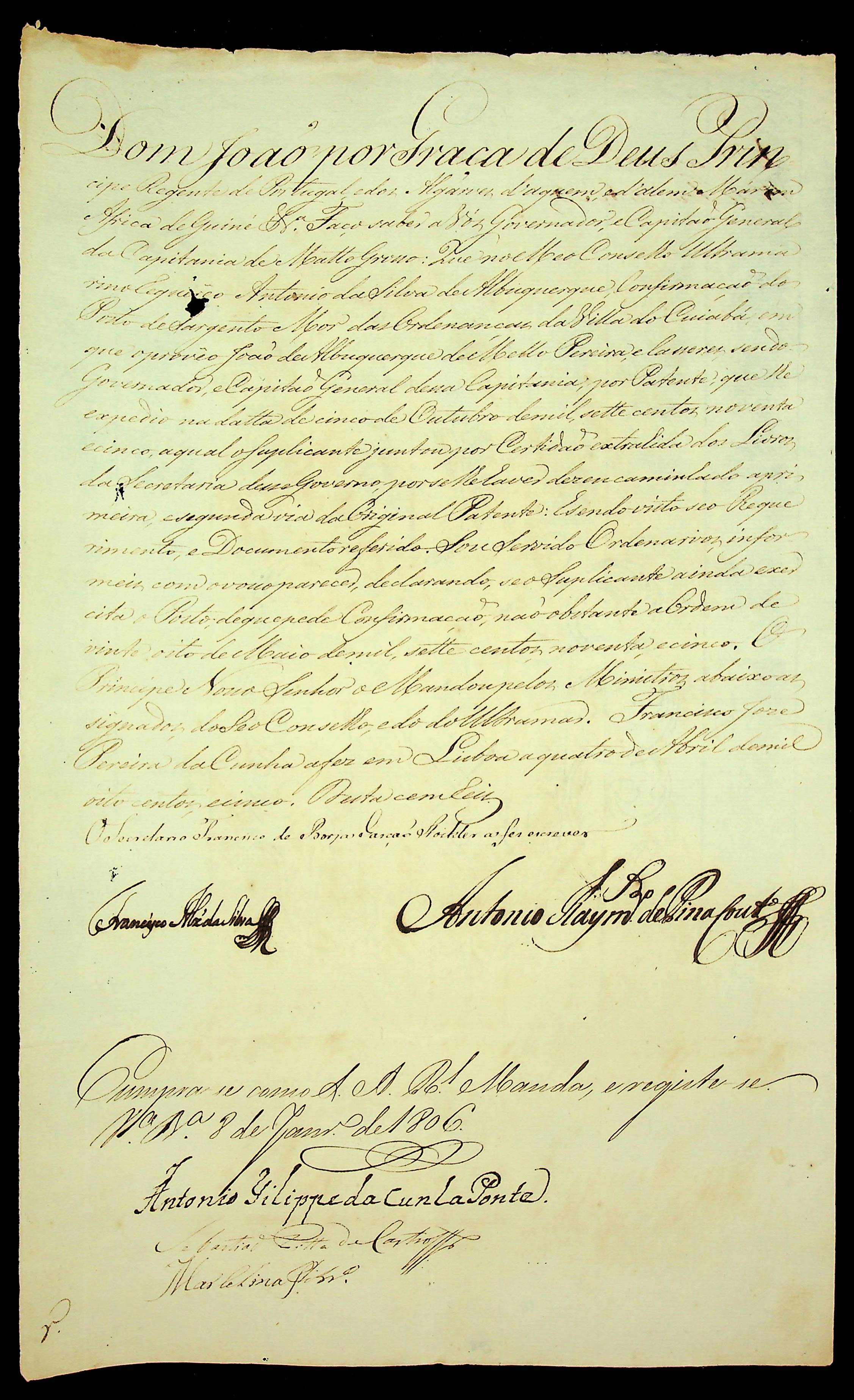 ORDEM RÉGIA do Príncipe Regente D. João ao Governador e Capitão General da Capitania de Mato Grosso [Manoel Carlos de Abreu e Menezes].