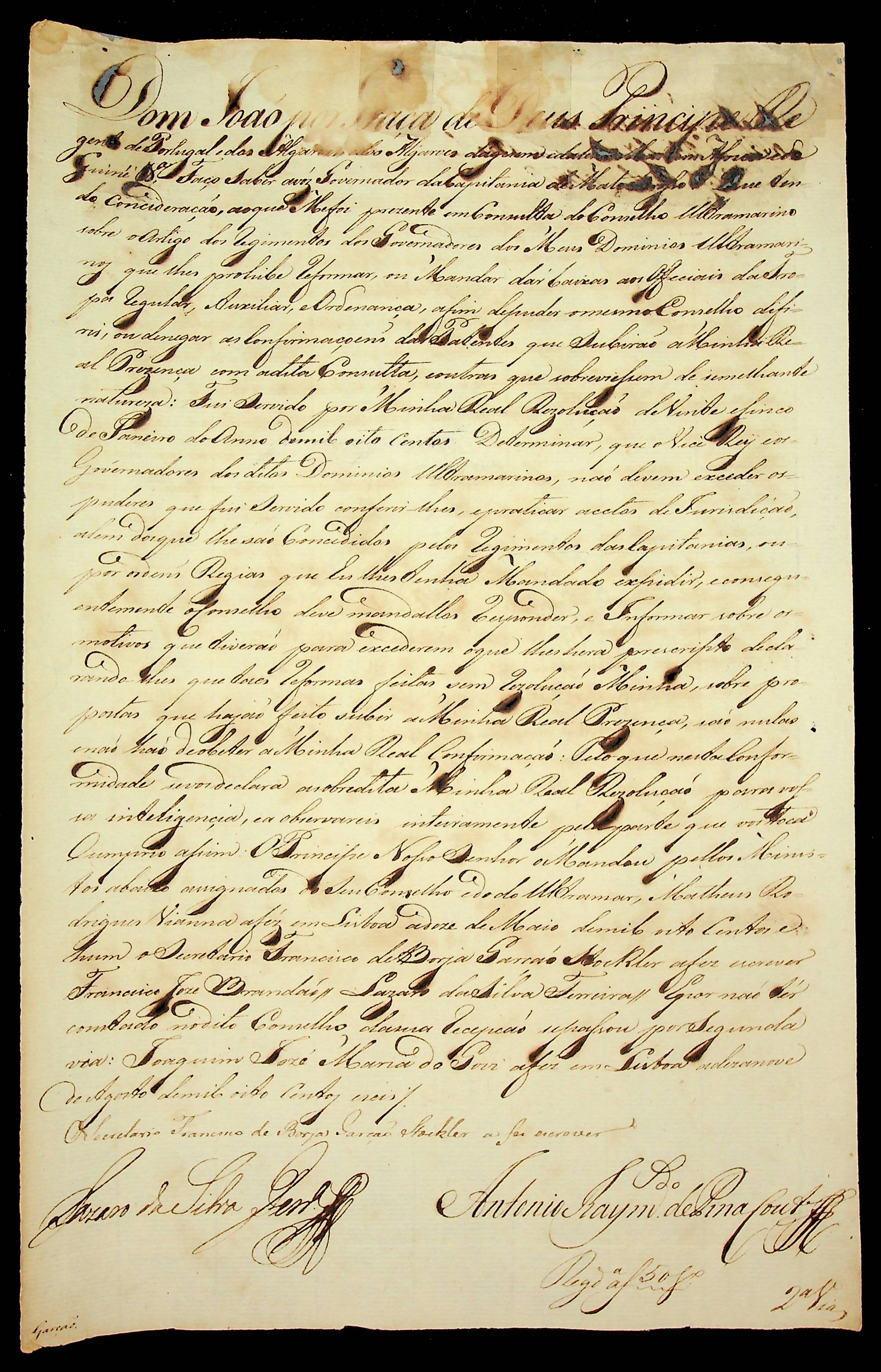 ORDEM RÉGIA do Príncipe Regente D. João ao Governador e Capitão General da Capitania de Mato Grosso.