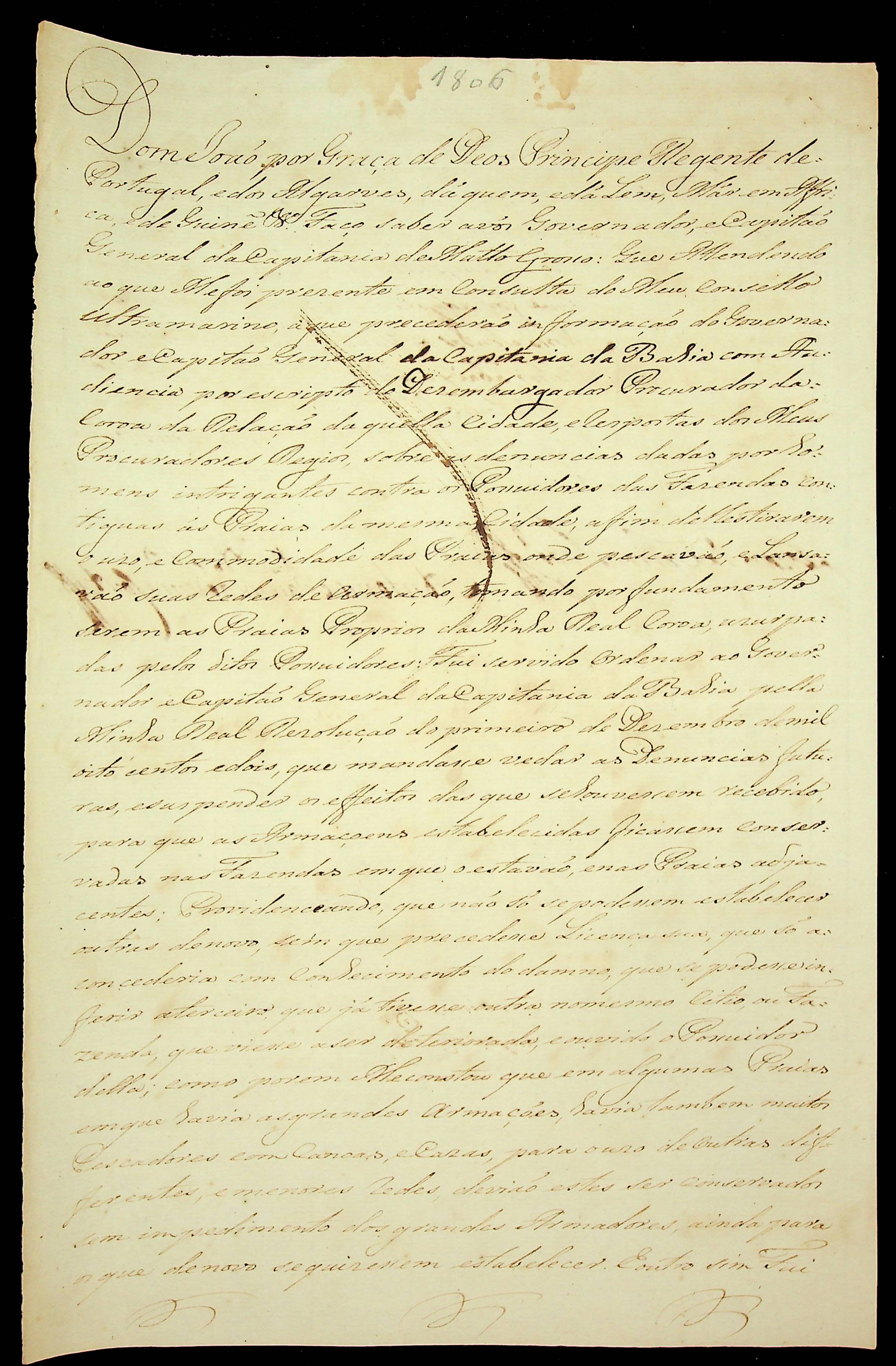 ORDEM RÉGIA do Príncipe Regente D. João ao Governador e Capitão General da Capitania de Mato Grosso.