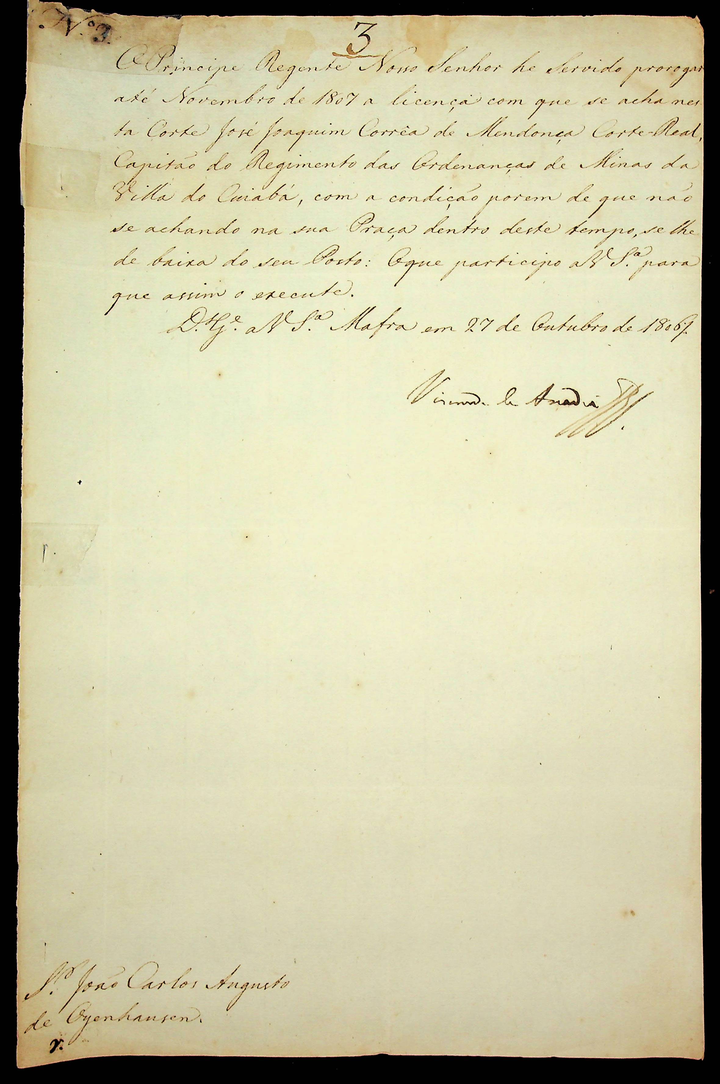 ORDEM RÉGIA do Príncipe Regente D. João ao Governador e Capitão General da Capitania de Mato Grosso.