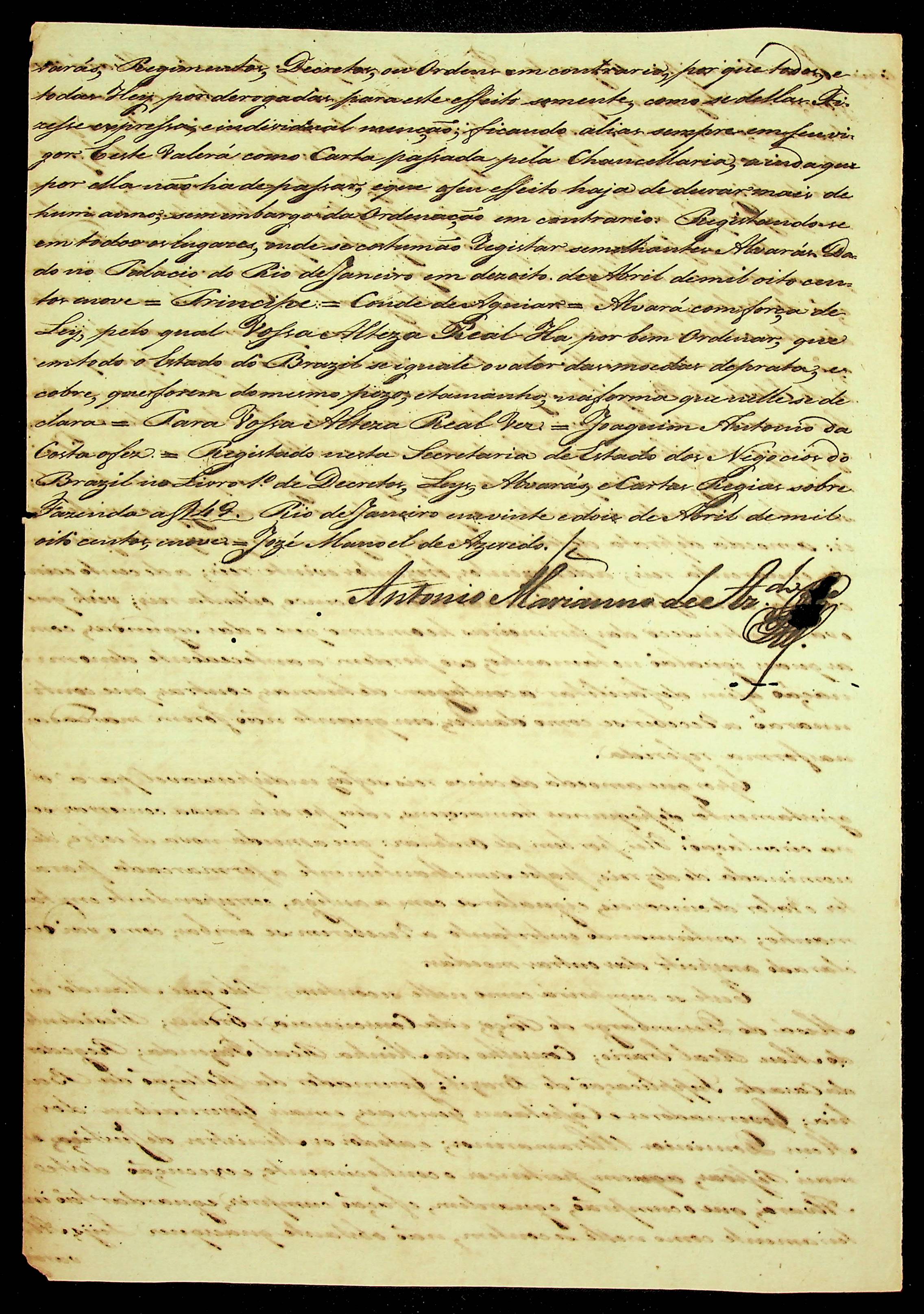 ORDEM RÉGIA expedida pelo Príncipe Regente D. João regulamentando os valores da moeda de uso corrente no comércio interno.