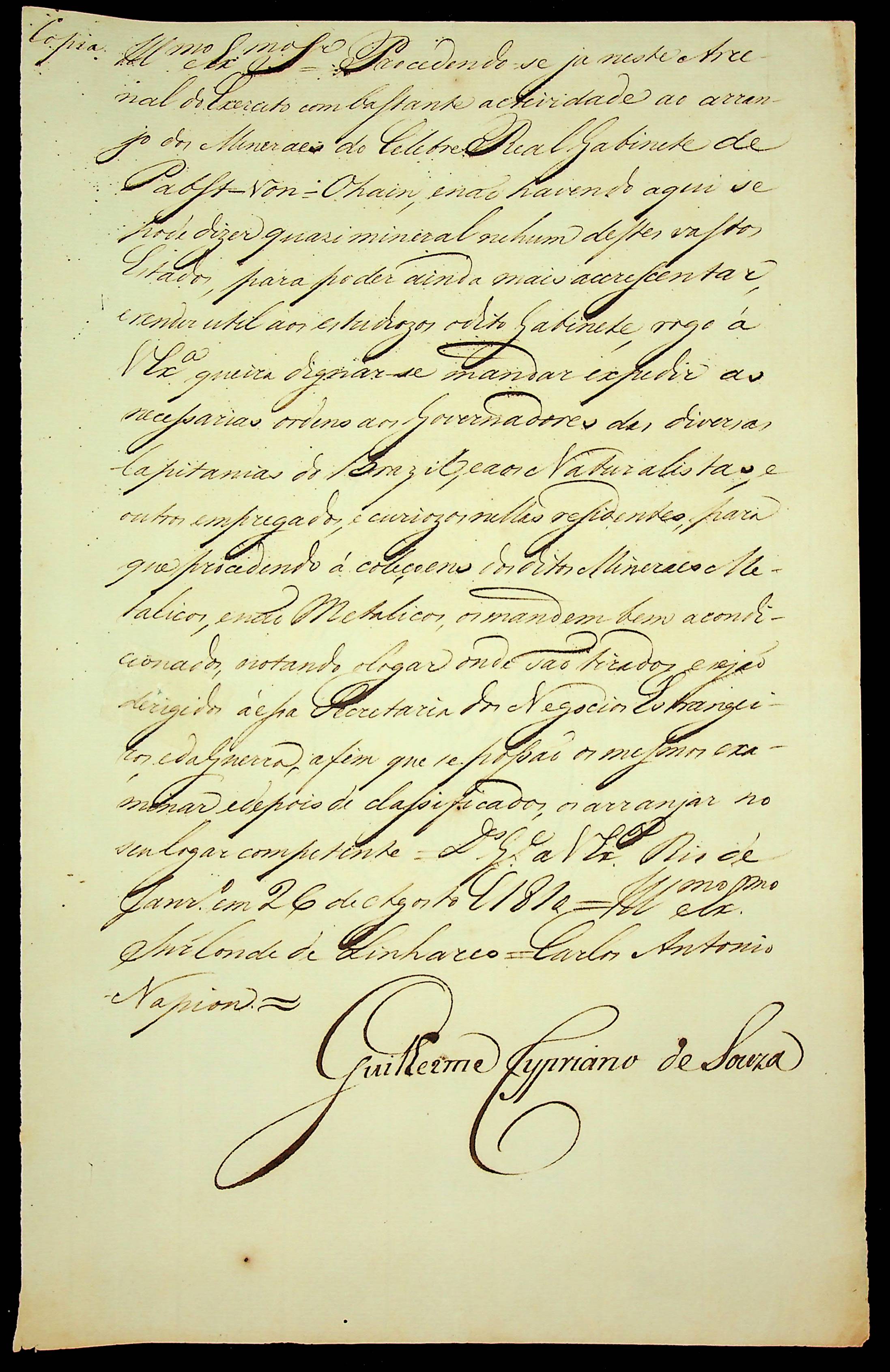ORDEM RÉGIA (cópia) do Conde de Linhares à Carlos Antônio Napion.
