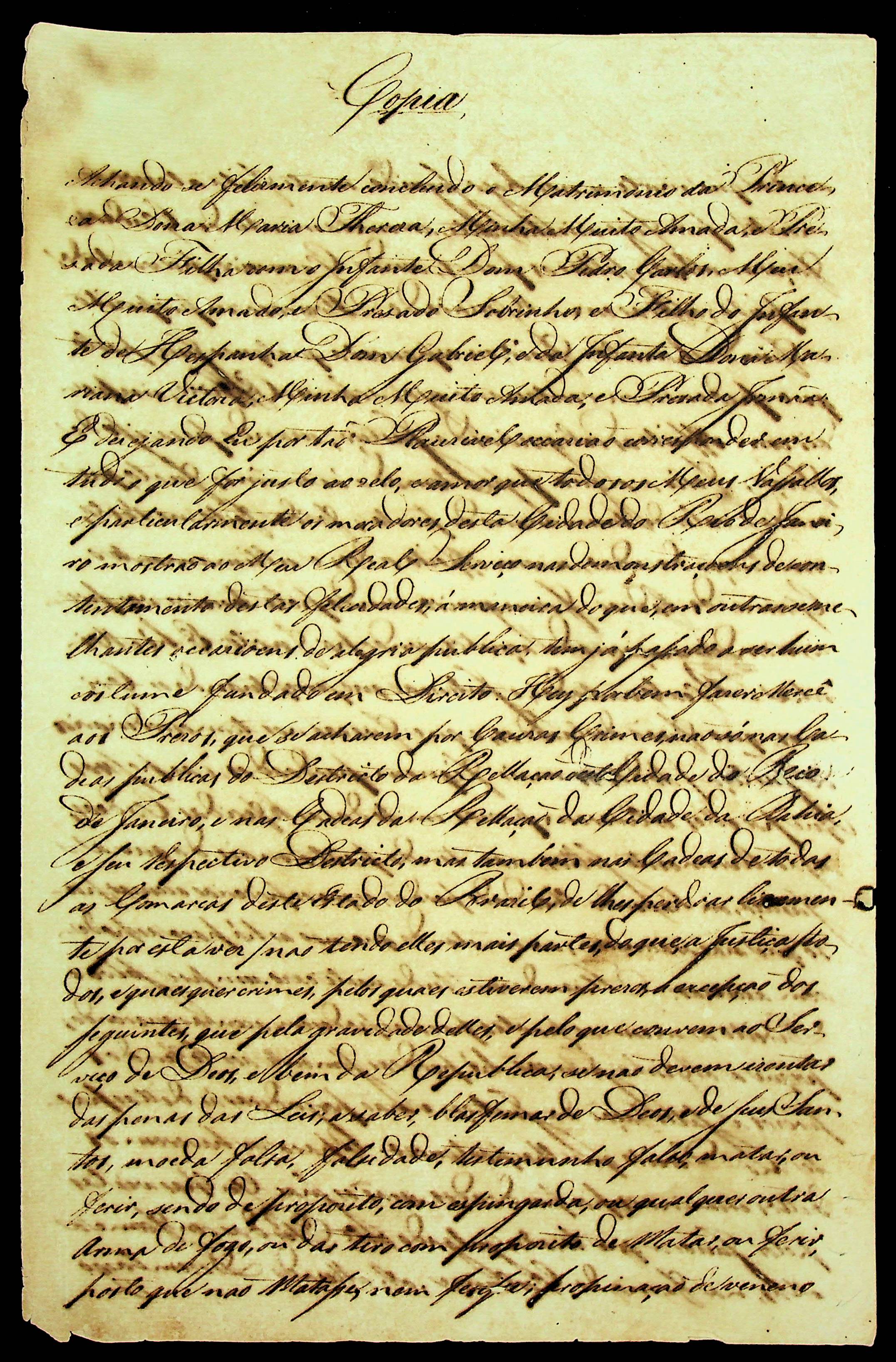 ORDEM RÉGIA (cópia) expedida pelo Príncipe Regente D. João.