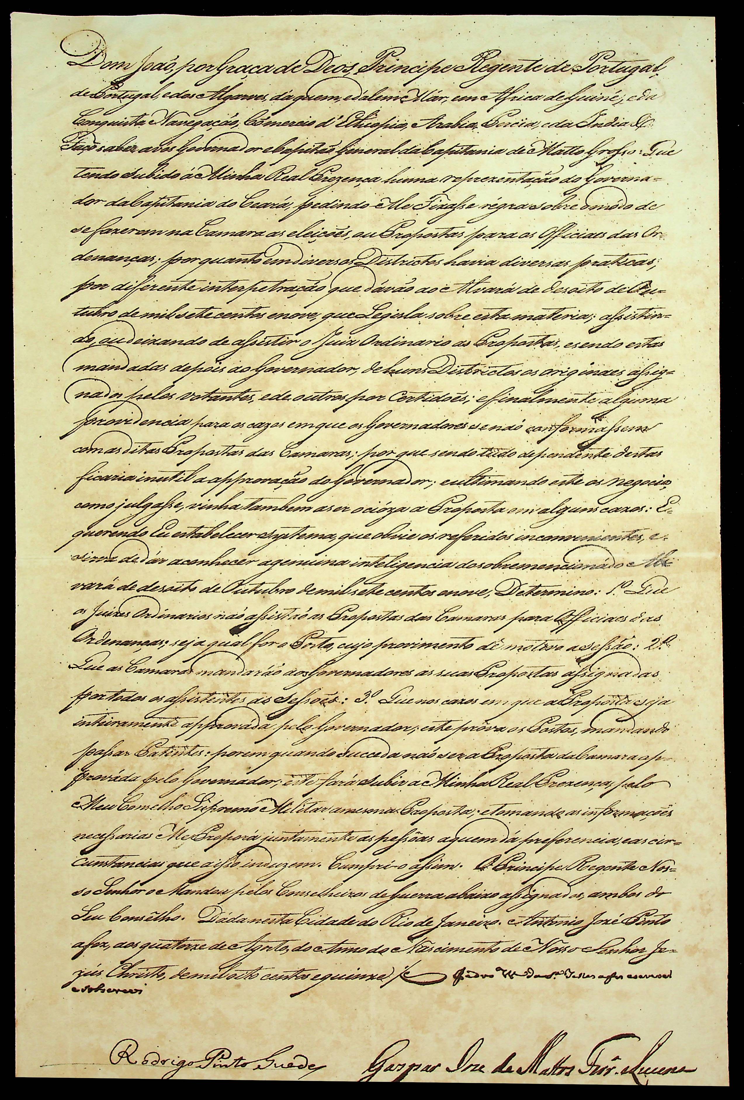 ORDEM RÉGIA do Príncipe Regente D. João ao Governador e Capitão General da Capitania de Mato Grosso [João Carlos Augusto de Oeynhausen Gravemberg].