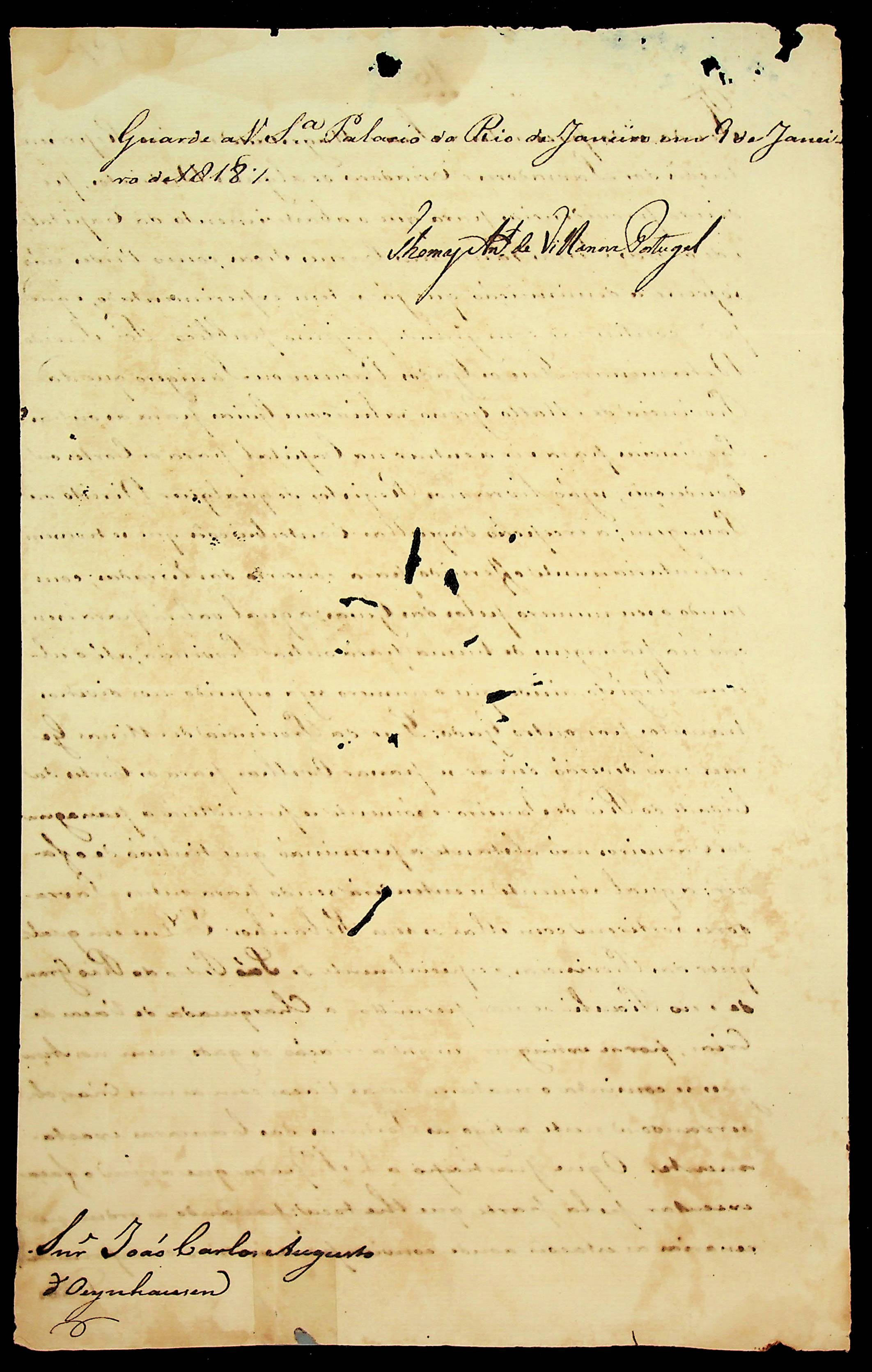 ORDEM RÉGIA do [Príncipe Regente D. João] ao [Governador e Capitão General da Capitania de Mato Grosso] João Carlos Augusto de Oeynhausen Gravemberg.