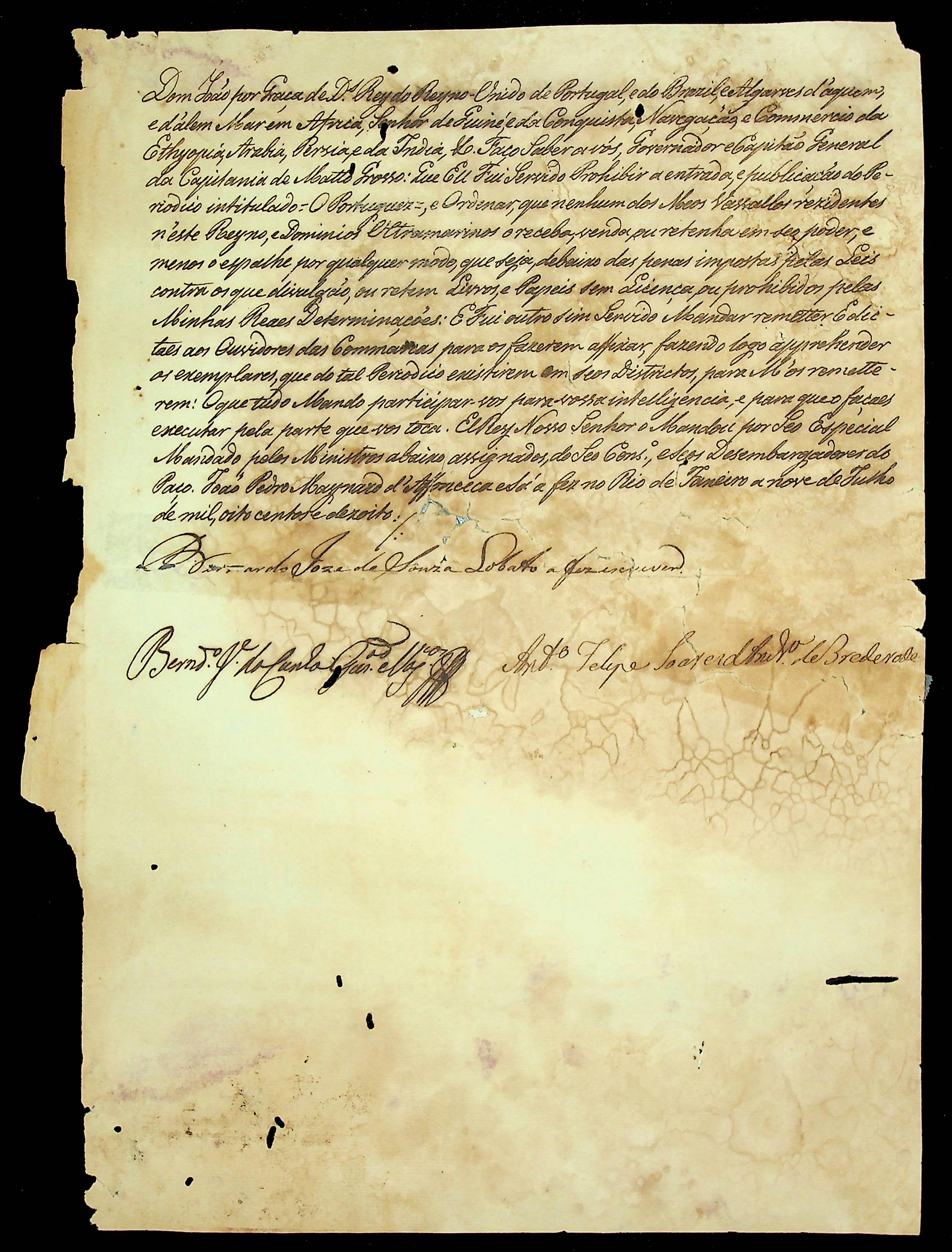 ORDEM RÉGIA do Príncipe Regente D. João ao [Governador e Capitão General da Capitania de Mato Grosso] João Carlos Augusto de Oeynhausen Gravemberg.
