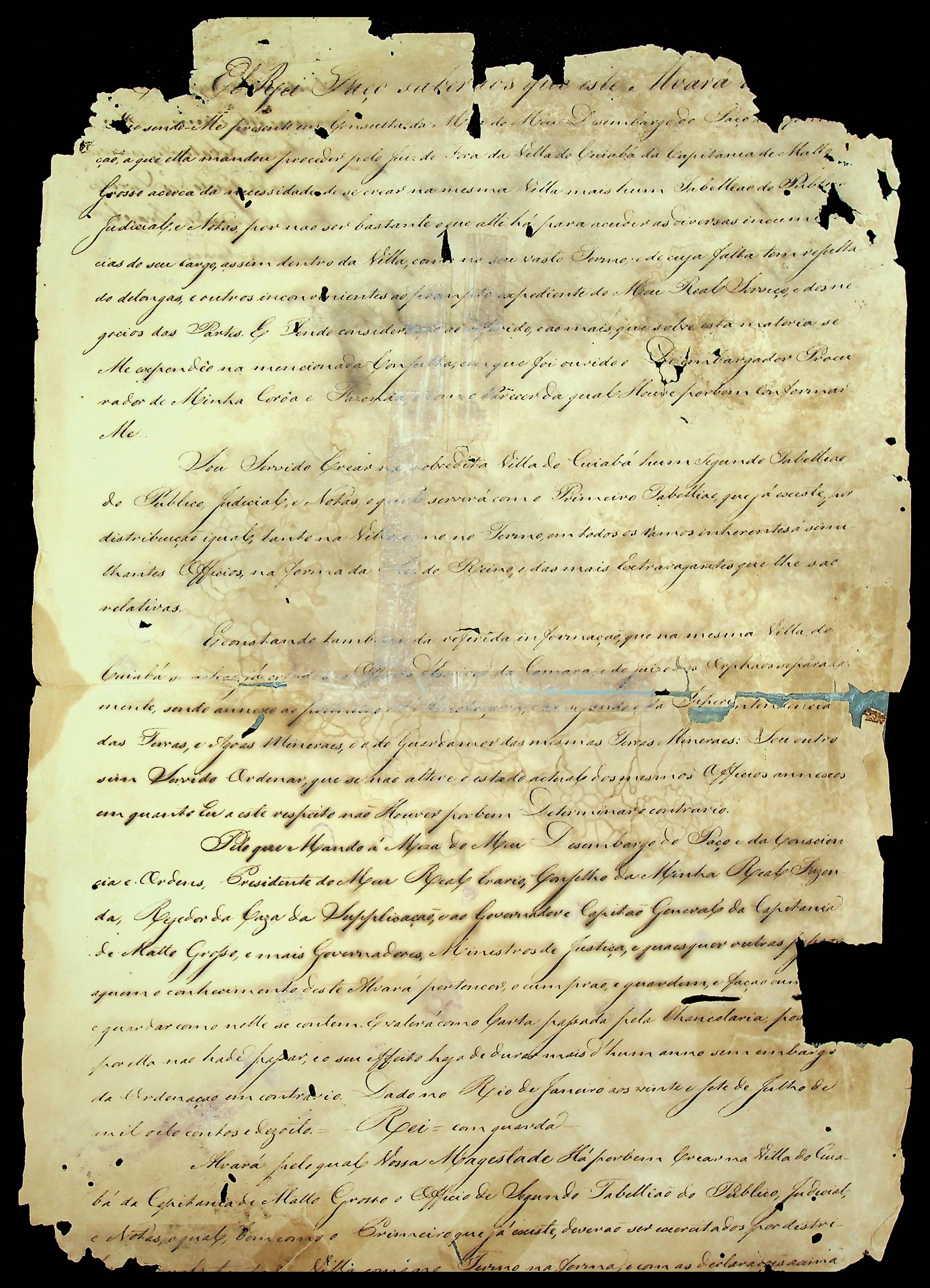 ORDEM RÉGIA do Príncipe Regente D. João ao [Governador e Capitão General da Capitania de Mato Grosso] João Carlos Augusto de Oeynhausen Gravemberg.
