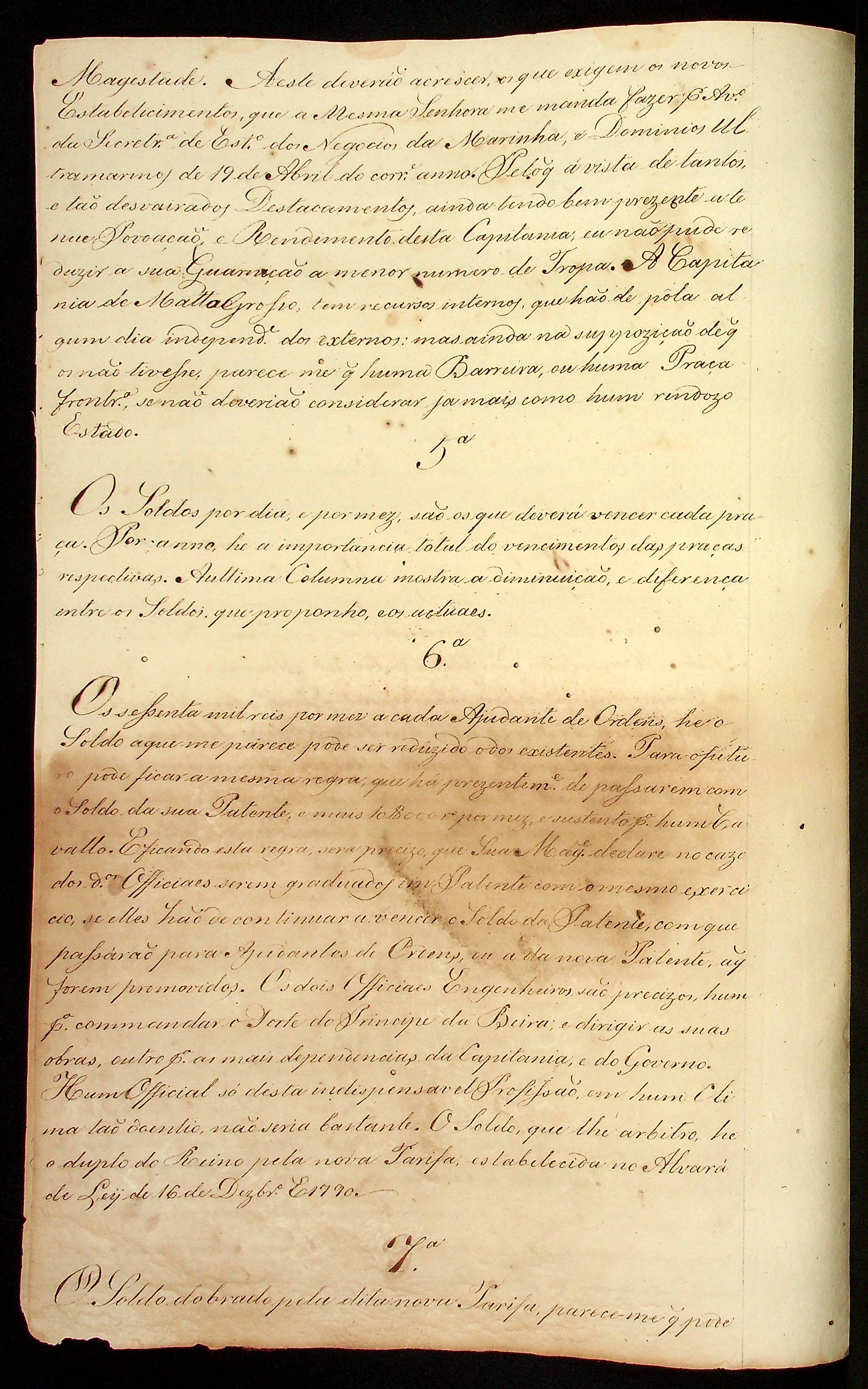 PROPOSTA feita pelo Governador e Capitão-General da Capitania de Mato Grosso Caetano Pinto de Miranda e Montenegro, observações ao Mapa Militar.