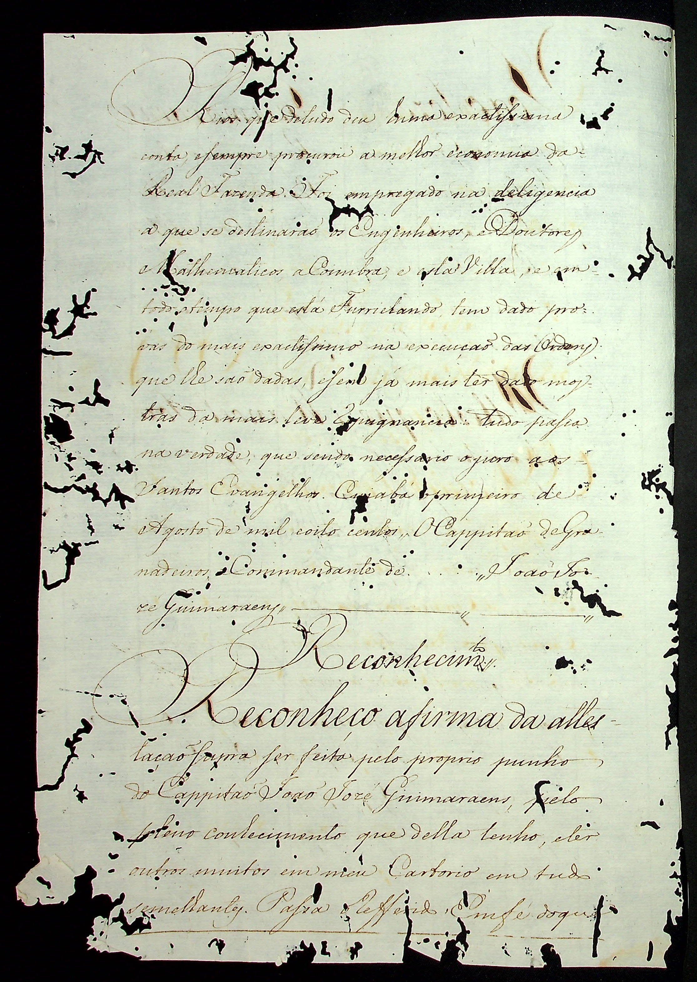 PROCESSO de Justificação (incompleto) em que Manoel José Araújo requer junto ao [Príncipe Regente D.João VI] que lhe passe a patente de Ajudante o Alferes do Regimento de Milícia da Capitania de Mato Grosso.