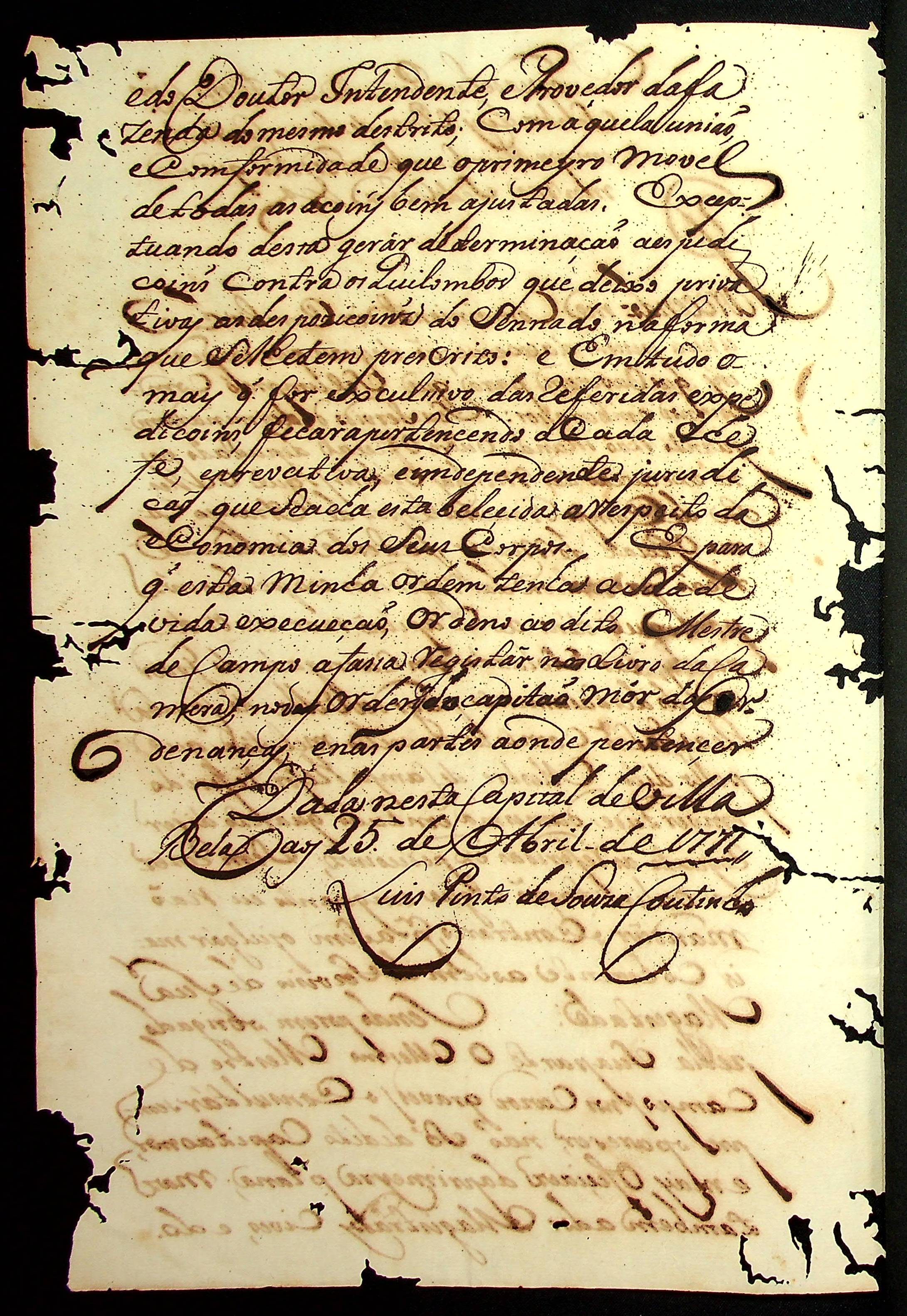 PORTARIA (Cópia) do Governador e Capitão-General da Capitania de Mato Grosso Luís Pinto de Souza Coutinho em que incube as ordens que na mesma se declara ao mestre-de-campo.