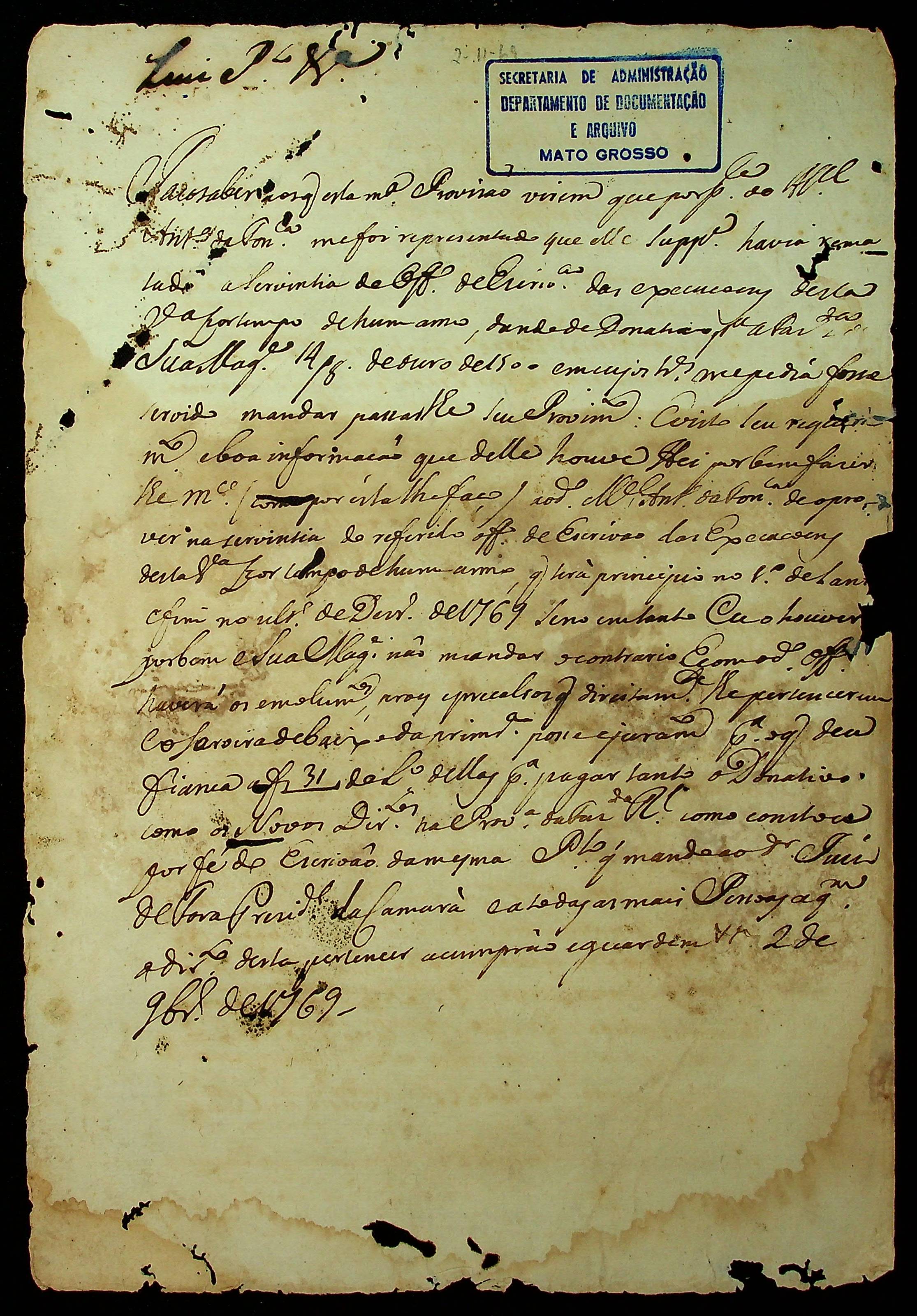 PROVISÃO do Governador e Capitão-General da Capitania de Mato Grosso Luís Pinto de Souza Coutinho, Nomeando o Manoel Antônio de Fonseca ao cargo de Escrivão das execuções.
