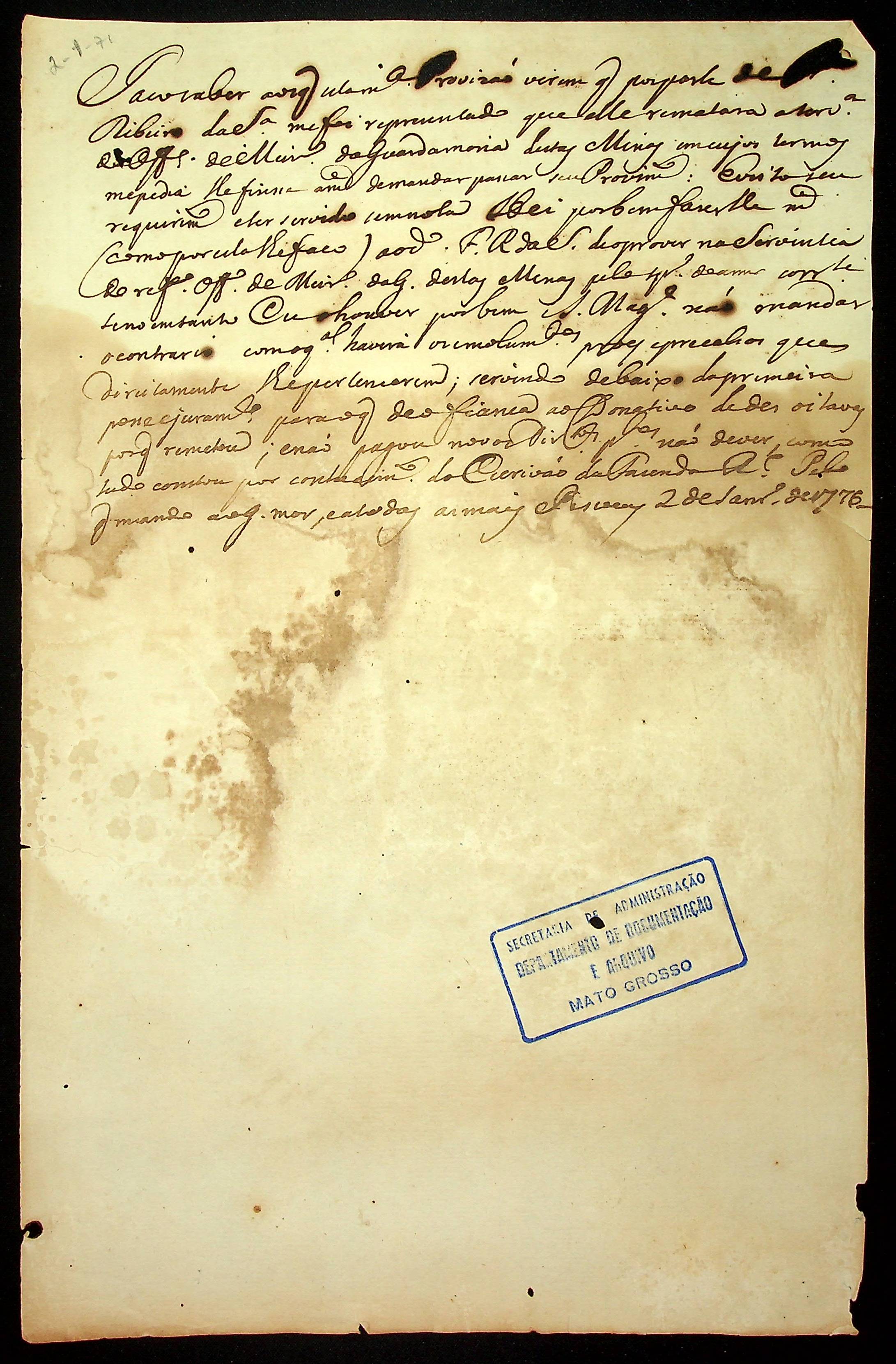 PROVISÃO a [...] Ribeiro da Silva para o cargo de Meirinho da Guardamoria, passada pelo [Governador e Capitão General da Capitania de Mato Grosso Luiz de Albuquerque de Melo Pereira e Cáceres].