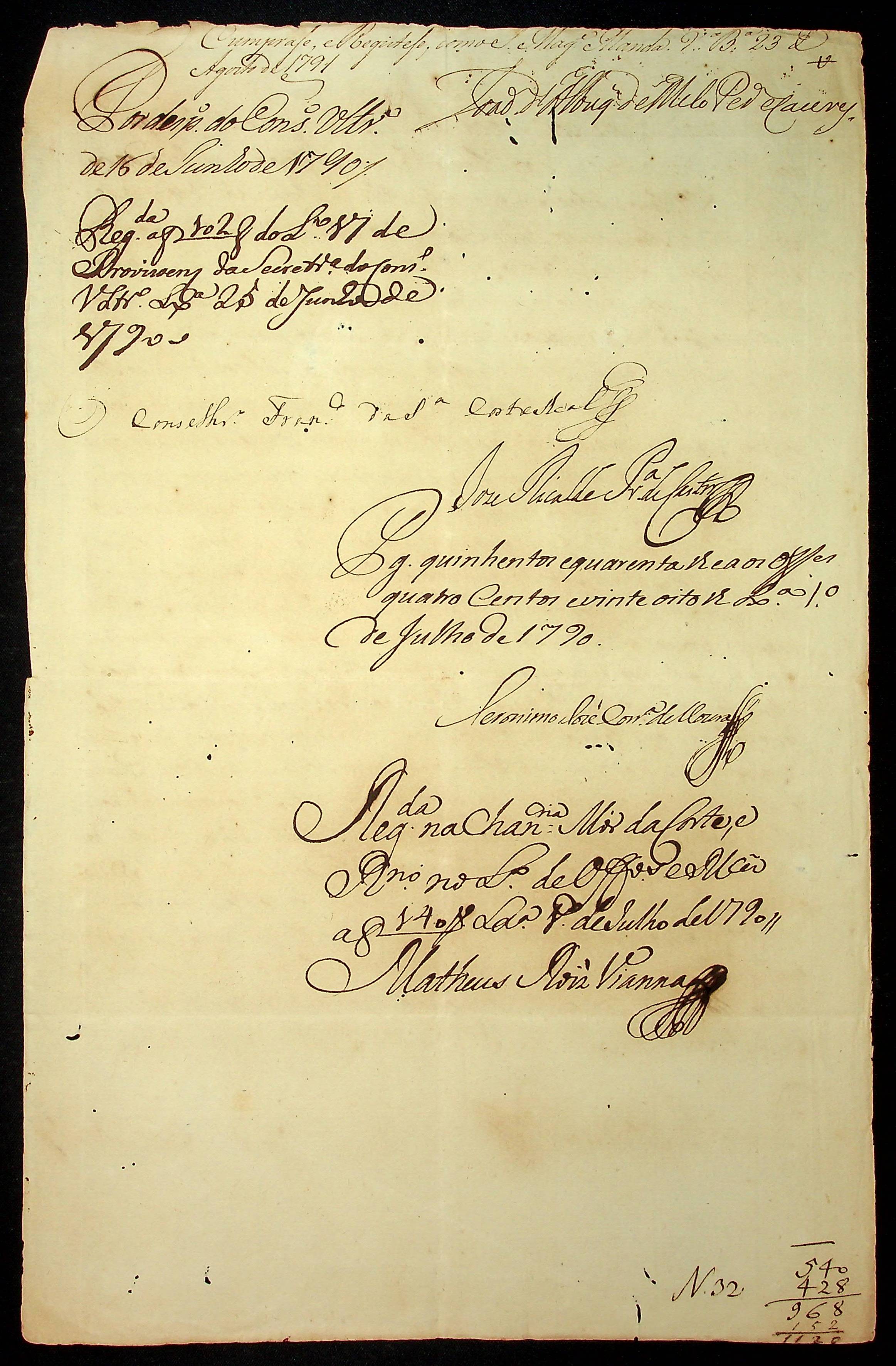 PROVISÃO da Rainha Maria concedendo a licença ao Tenente da Companhia de Dragões da Capitania de Mato Grosso Francisco Luiz Carneiro.