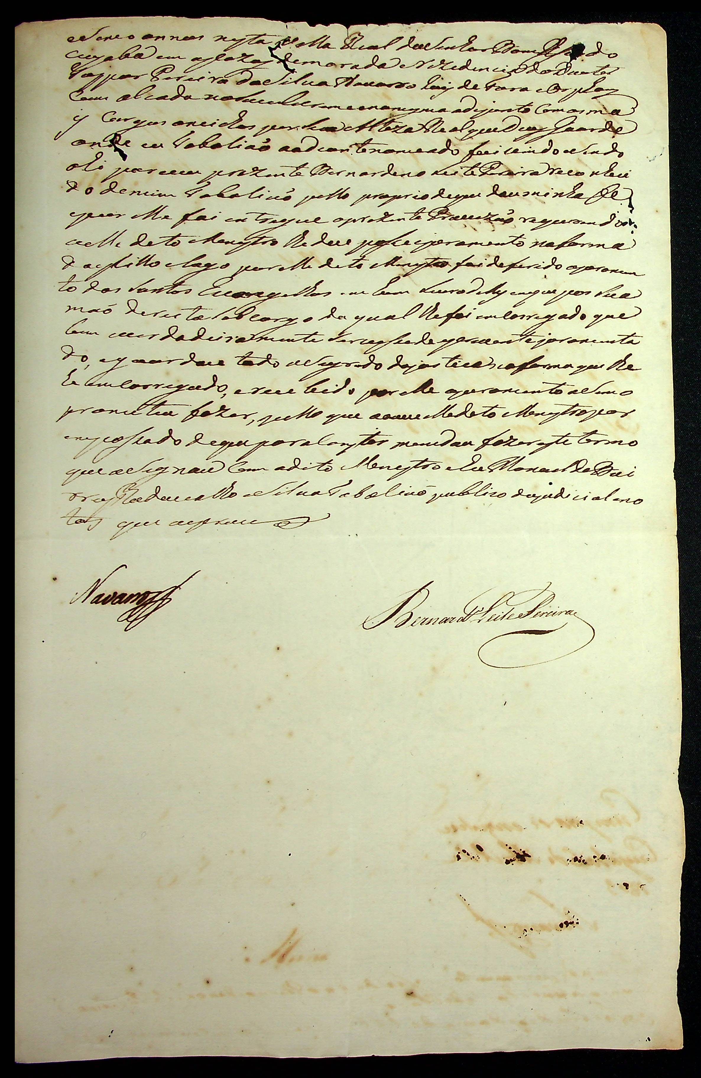 PROVISÃO à Bernardino Leite Pereira expedida pelo Governador e Capitão-General da Capitania de Mato Grosso Manoel Carlos de Abreu e Menezes nomeando para o Cargo de Escrevente.