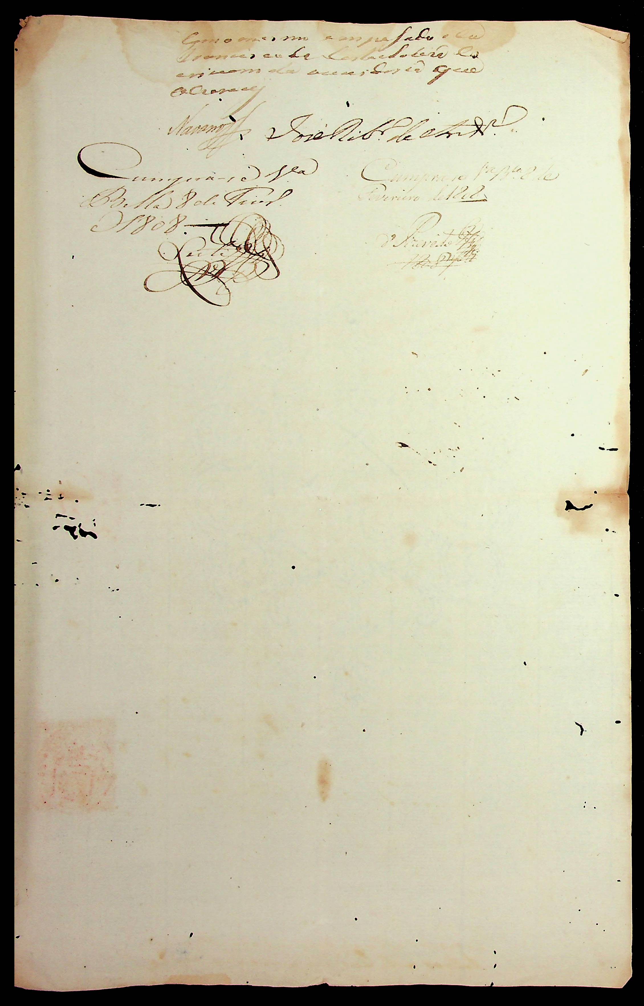 PROVISÃO expedida pelo [Governador e Capitão-General da Capitania de Mato Grosso] João Carlos Augusto d´ Oeynhausen e Gravemberg informando sobre a petição de José Ribeiro de Andrade para exercer o cargo de Requerente e solicitador de causas dos auditórios de Vila Bela.
