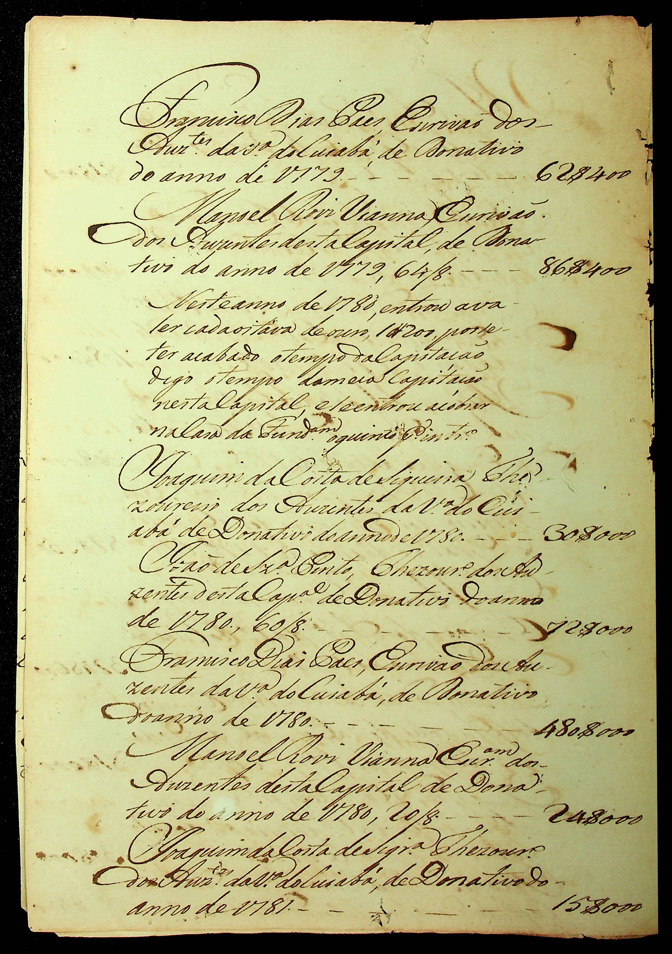 RELATÓRIO (cópia) dos rendimentos dos donativos dos ditos vinte e quatro anos principiados no ano de 1771 até o ano de 1794.