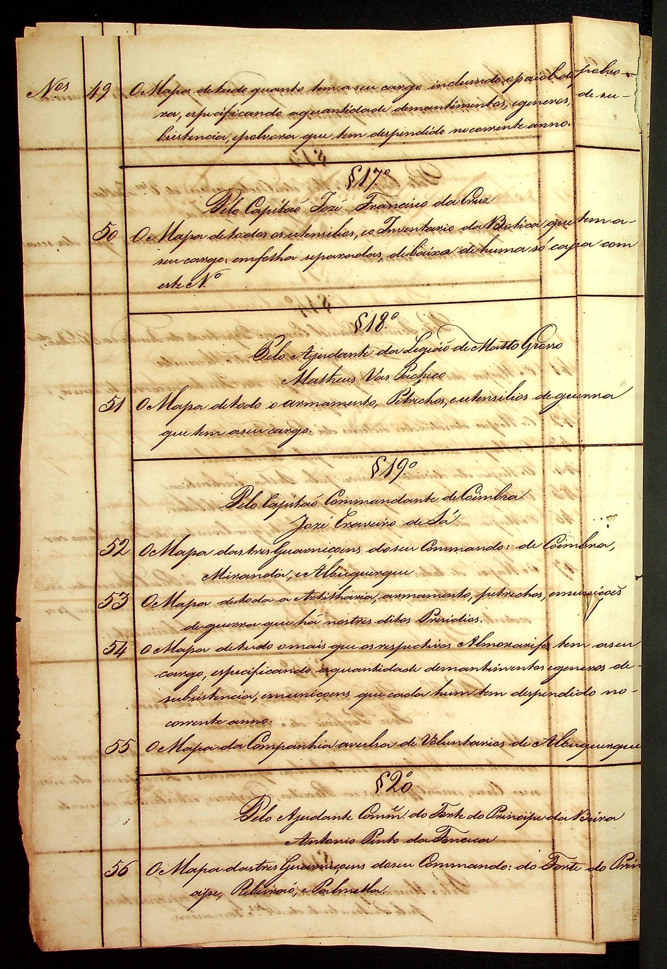 RELATÓRIO das informações relativas a entrega do Governo do Governador e Capitão General da Capitania de Mato Grosso João Carlos Augusto de Oeynhausen e Gravemberg a seu sucessor Francisco de Paula Maggessi Tavares de Carvalho.