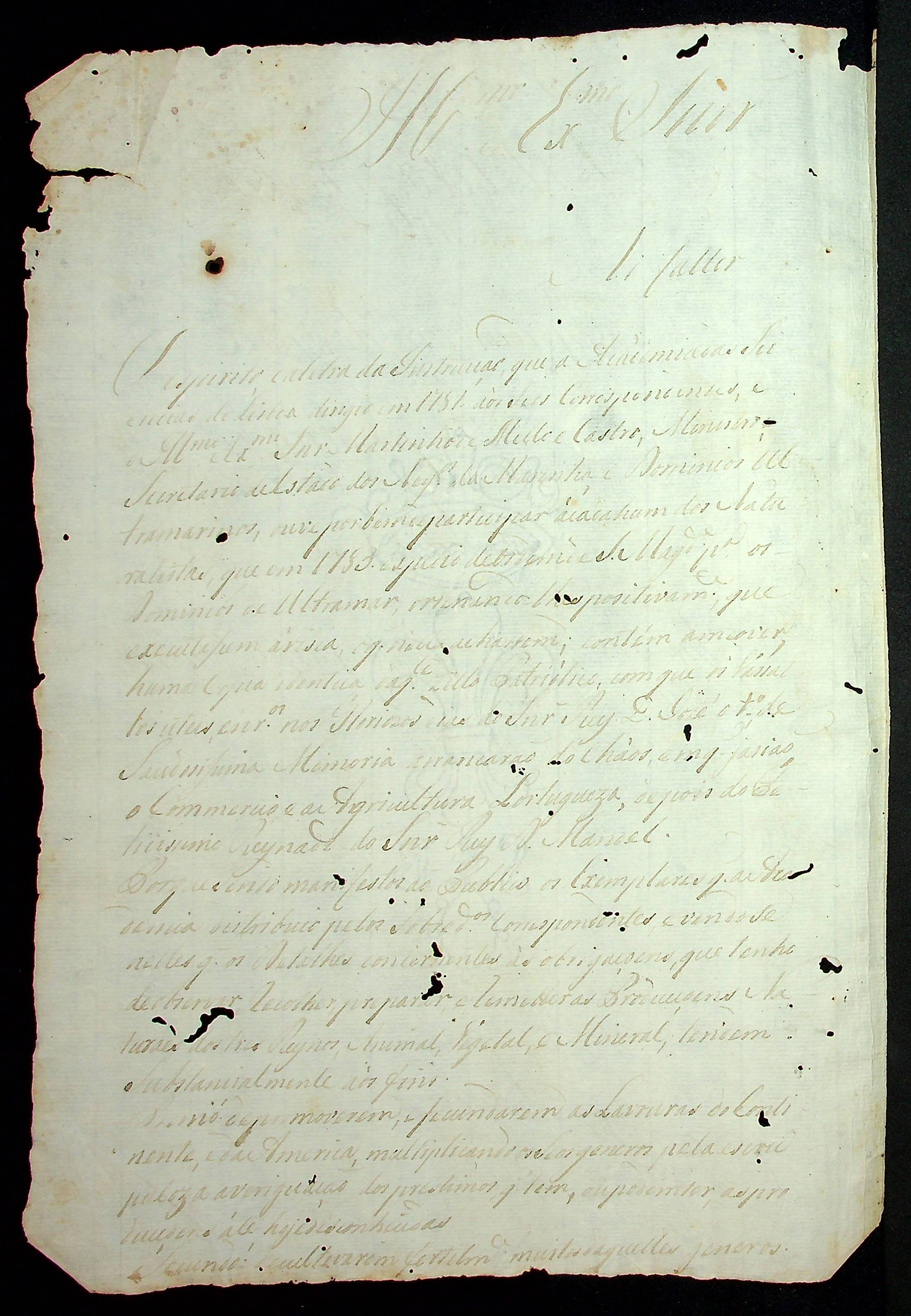 RELATÓRIO do Naturalista Alexandre Rodrigues Ferreira sobre a situação da agricultura no Pará.